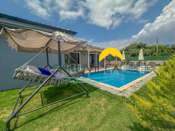 Özellikler: Özel açık yüzme havuzu, güneşlenme alanı, şezlonglar, özel bahçe, özel park yeri ve mangal alanı.