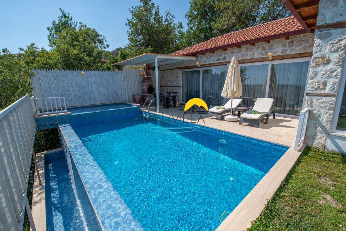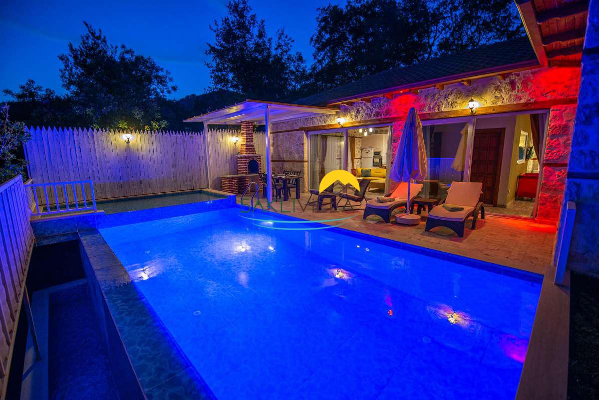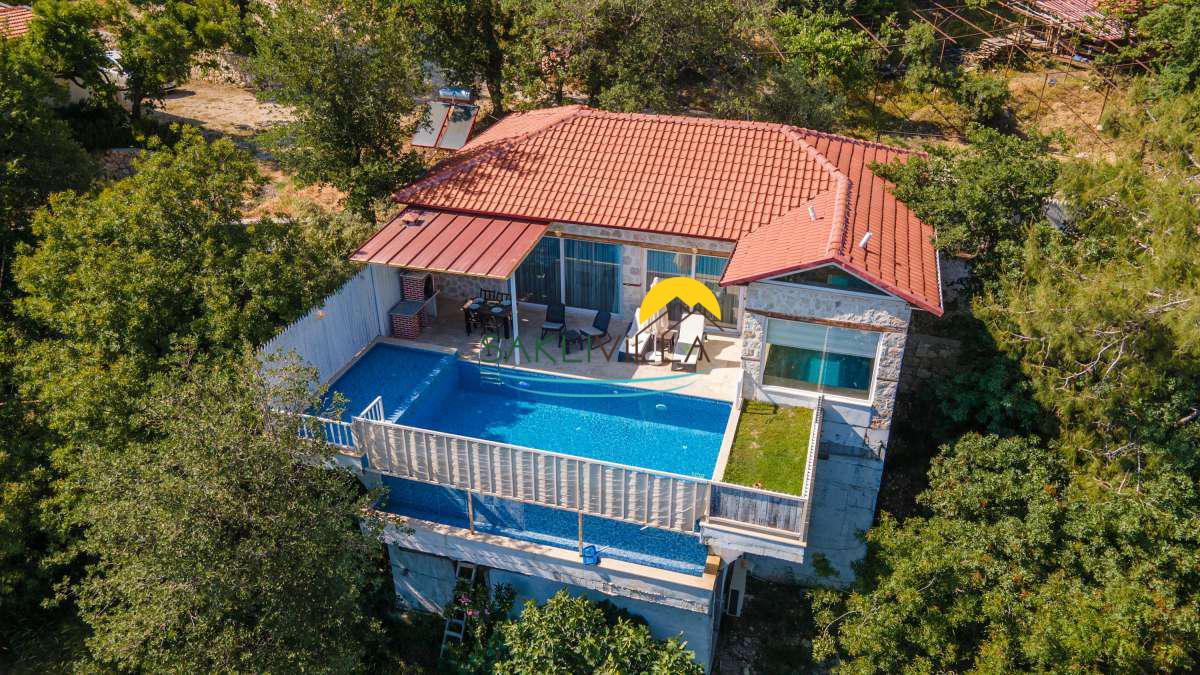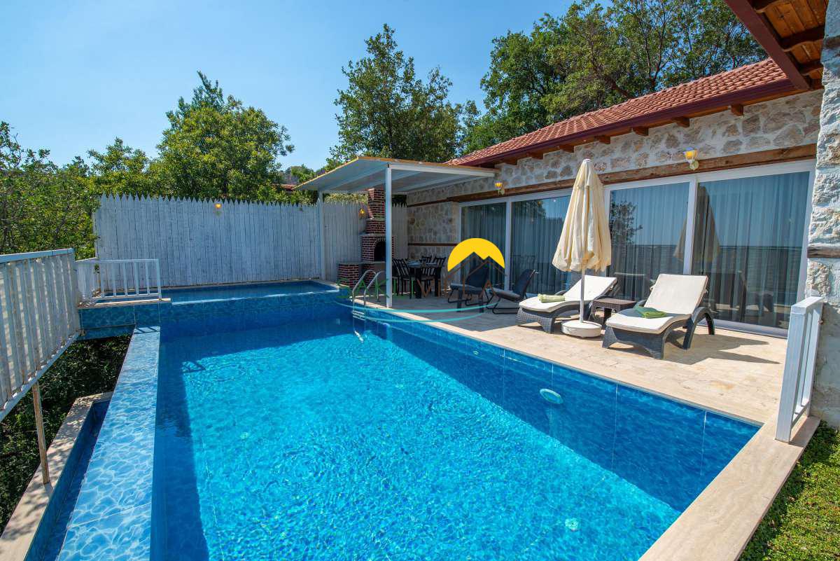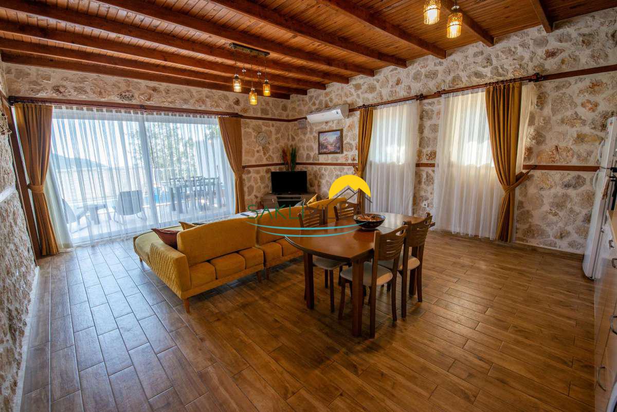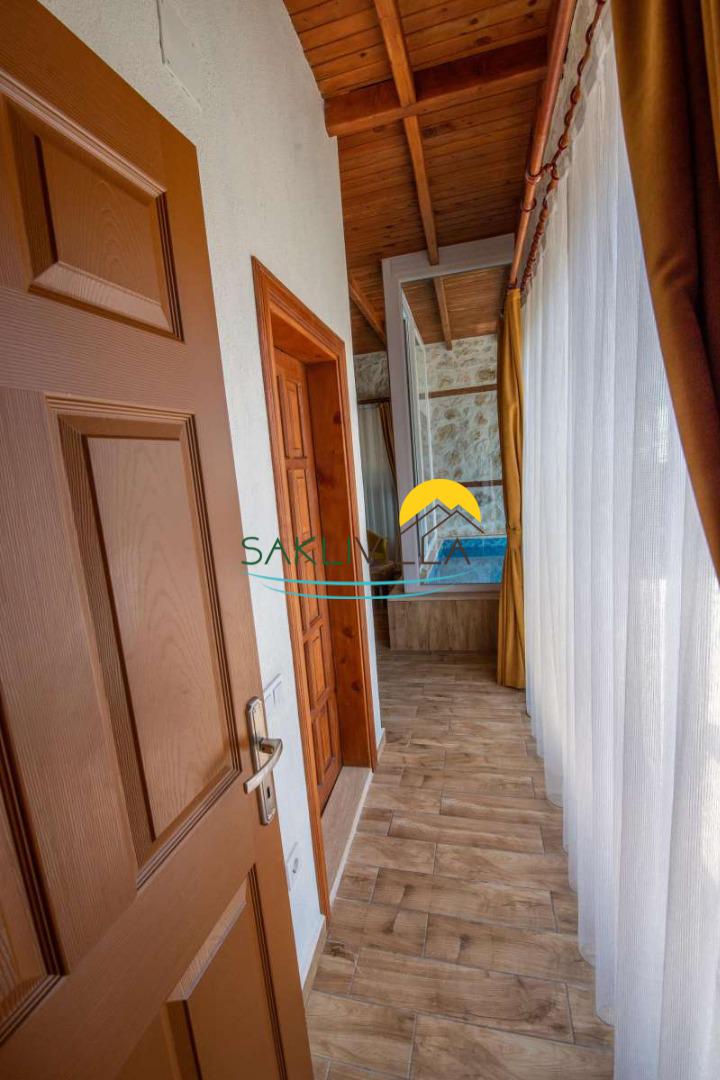 Taş mimarisi ve şık tasarımıyla dikkat çeken villamızda kapalı havuz vardır. Böylece villamız, misafirlerine dört mevsim tatil imkanı sunar. Ayrıca bu kapalı havuz, jakuzi özelliğine de sahiptir. 3,8 m. x 2,5 m. genişliğinde 1,2 m derinliğinde ısıtmalı iç havuza sahip olan bu muhteşem balayı villamız Kalkan'ın en özel villalarındandır.