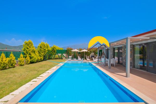 Özellikler: Özel açık yüzme havuzu, güneşlenme alanı, şezlonglar, özel bahçe, özel park yeri ve mangal alanı.