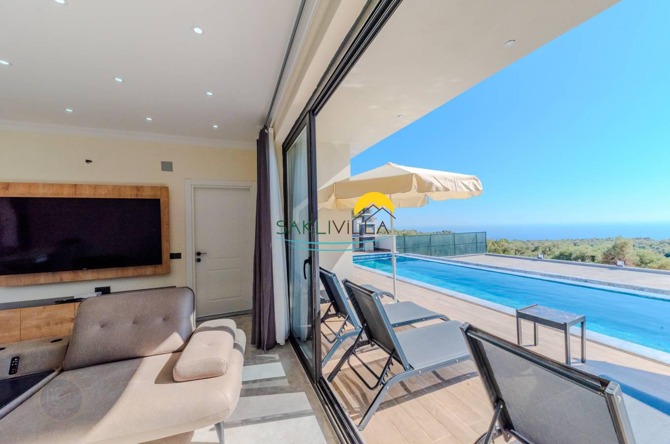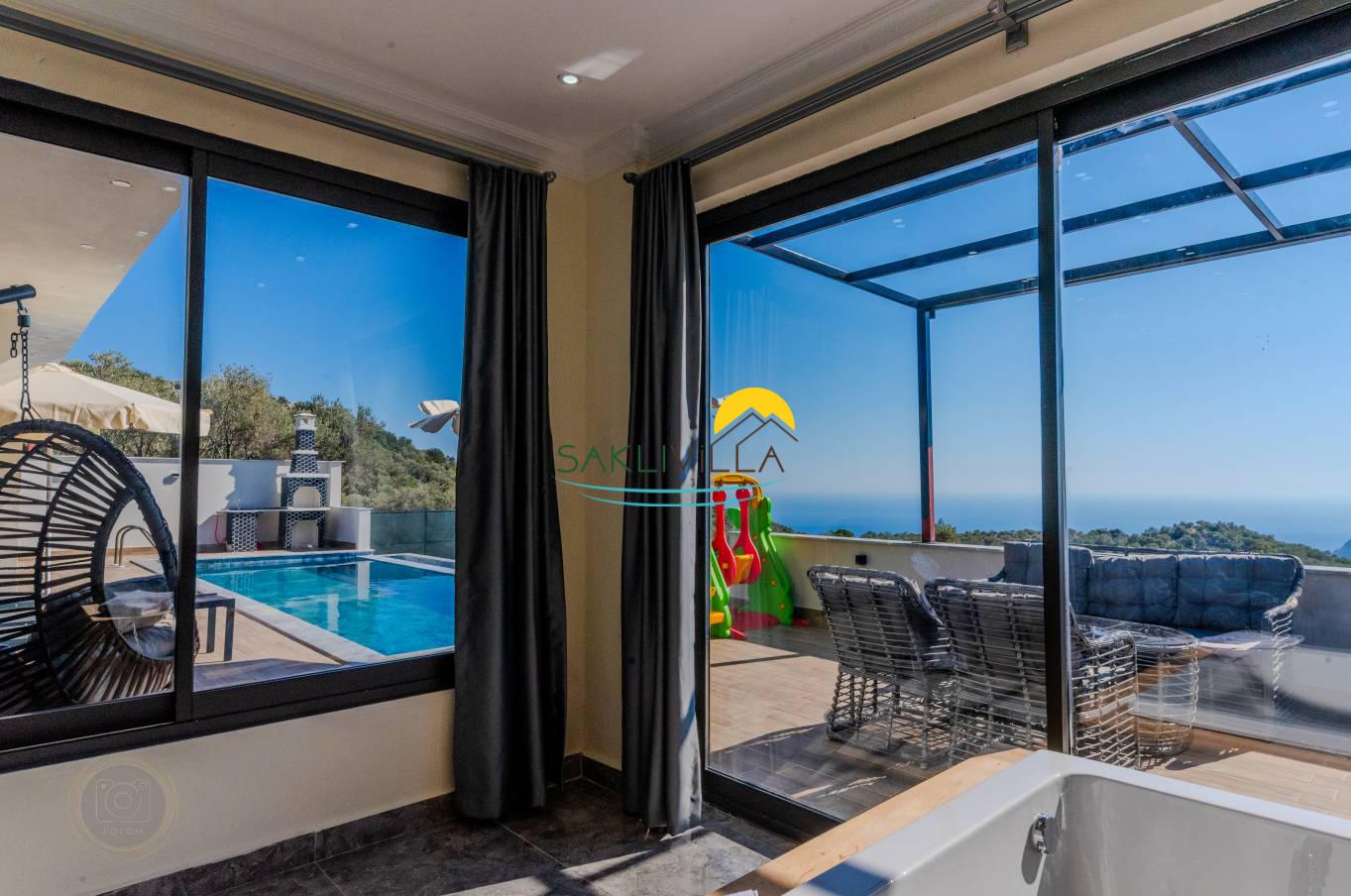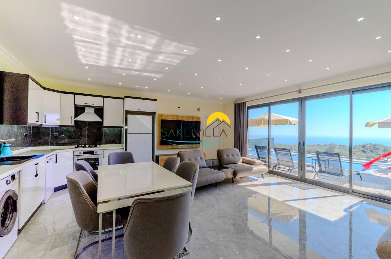 Villa Hekim’in konumu da değerini arttırmaktadır. Kalkan Ordu mevkiinde bulunan villa, panoramik deniz manzarasına sahiptir. Deniz manzarası, konaklamaya sanatsal bir boyut katarken, ruhun ve zihnin dinginleşmesine de katkı sağlamaktadır. Bu nedenle, doğa ile iç içe bir tatil arayanlar için panoramik deniz manzarası olmazsa olmaz bir özelliktir.