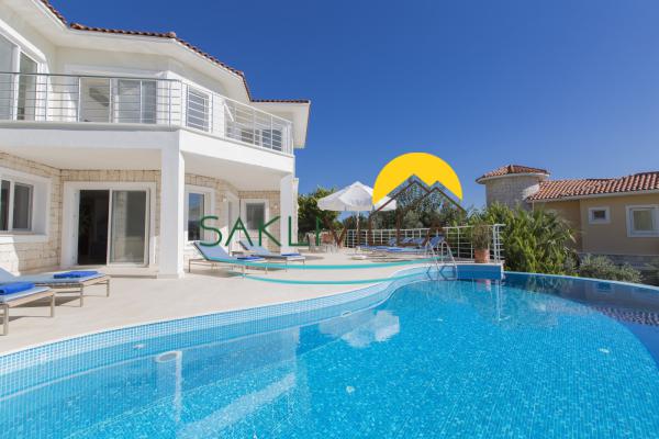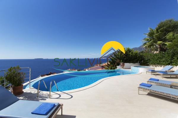 Salon: Deniz ve doğa manzaralı (Havuz katında), 10 kişilik yemek masası, oturma grubu, uydu alıcı, LCD TV , DVD payer, şömine, klima, lavabo, tuvalet, ütü, ütü masası, havuz kenarına çıkış ve kablosuz modem bulunmaktadır