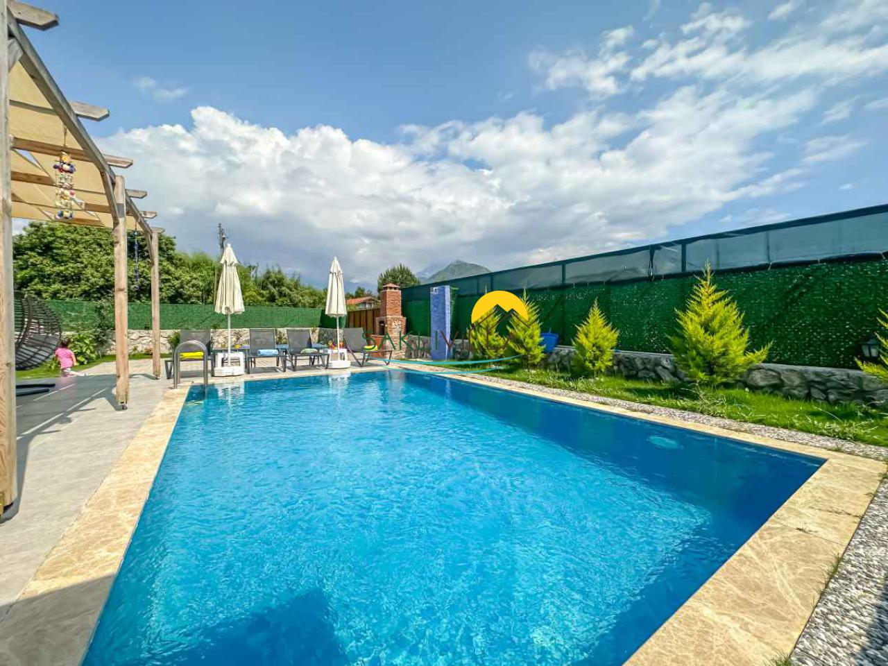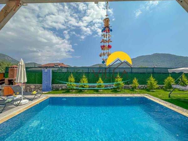 Özellikler: Özel açık yüzme havuzu, güneşlenme alanı, şezlonglar, özel bahçe, özel park yeri ve mangal alanı.