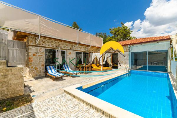 Villa Kelebek 1, Tek yatak odalı 2 kişi kapasiteli, korunaklı özel havuzlu terasa sahip lüks bir villadır. Doğa ile içe içe bir tatil imkanı sunan villamız korunaklı olma özelliği ile muhafazakar çiftler aileler ve balayı tatili için oldukça uygundur.