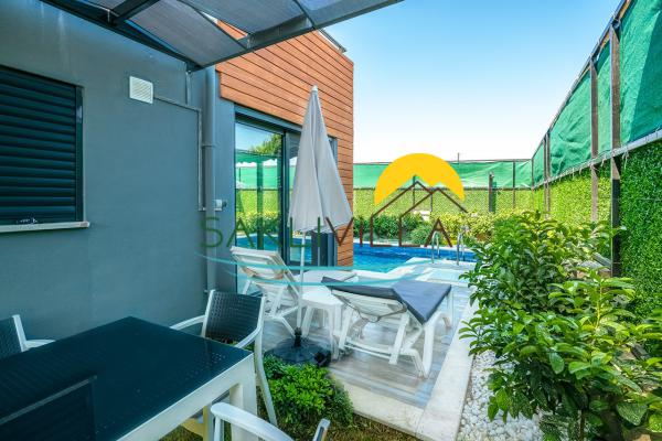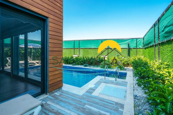 Özellikler : Özel açık yüzme havuzu, güneşlenme alanı, şezlonglar, özel bahçe, özel park yeri ve mangal alanı.