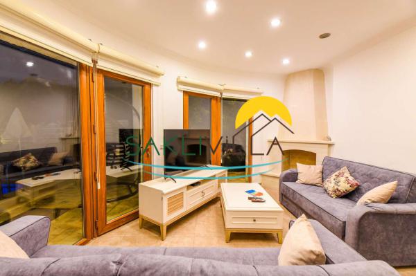 Salon: oturma grubu, yemek masası, LCD TV, uydu alıcısı, DVD player, salondan havuza çıkış ve ortak kullanım tuvalet bulunmaktadır.