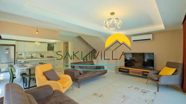 Salon:Villamızın salonunda; oturma grubu, TV, uydu alıcısı, klima, sehpa ve kablosuz modem yer almaktadır.