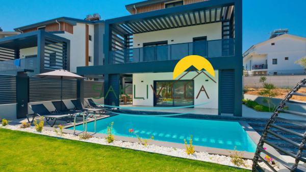 Özellikler: Özel açık yüzme havuzu, güneşlenme alanı, şezlonglar, özel bahçe, özel park yeri ve mangal alanı.