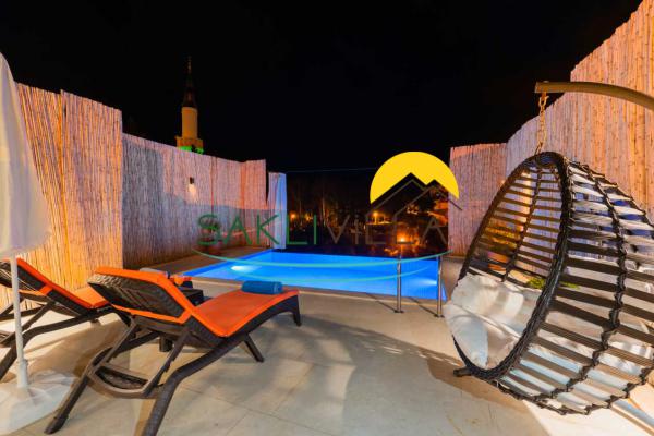 Özel havuzu ve terası dışarıdan görünmeyecek şekilde kapatılmıştır. Gözlerden uzak Patara Merkezi konumda, sessiz, sakin, romantik tatil ya da balayı yapmak isteyen çiftlerimiz için oldukça uygun bir seçenektir.