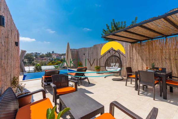 Havuz Terası:Terasında özel yüzme havuzu, şezlonglar, güneş şemsiyeleri, masa ve sandalyeler, mangal bulunmaktadır.