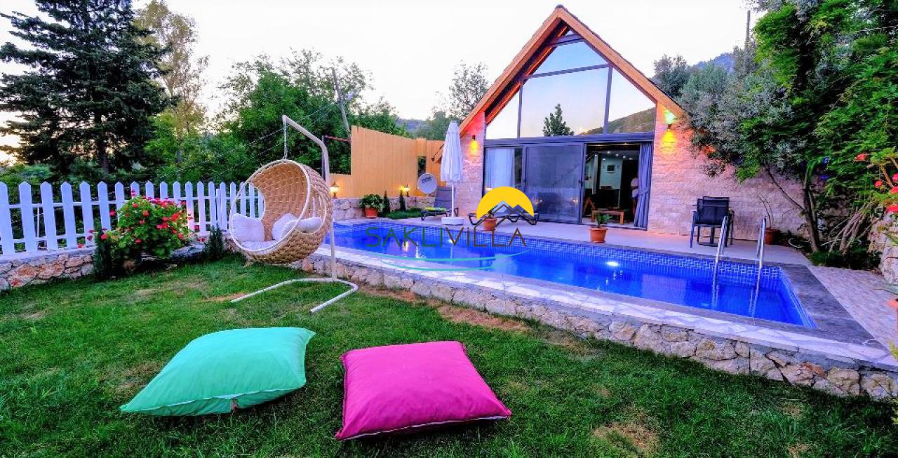 Villanın bahçe alanında çim alan, mangal, salıncak, şezlonglar ve güneş şemsiyesi vardır ve havuz terası tamamen korunaklı olarak tasarlanmıştır. Balayı villası Kuka aracınızla Kalkan merkezden yaklaşık olarak 15 dakika sürüş mesafesindedir.