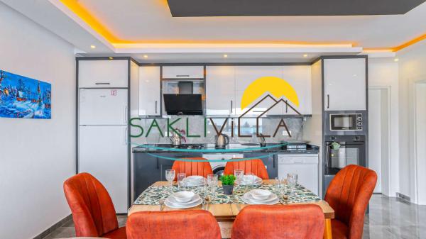 Mutfak:Modern Amerikan mutfakta buzdolabı, bulaşık makinesi, çamaşır makinesi, ankastre fırın, mikrodalga fırın, ankastre 4’lü ocak, elektrikli su ısıtıcısı, tost makinesi, ekmek kızartma makinesi, yemek takımı, tava, tencereler ve çatal bıçak takımı mevcuttur.