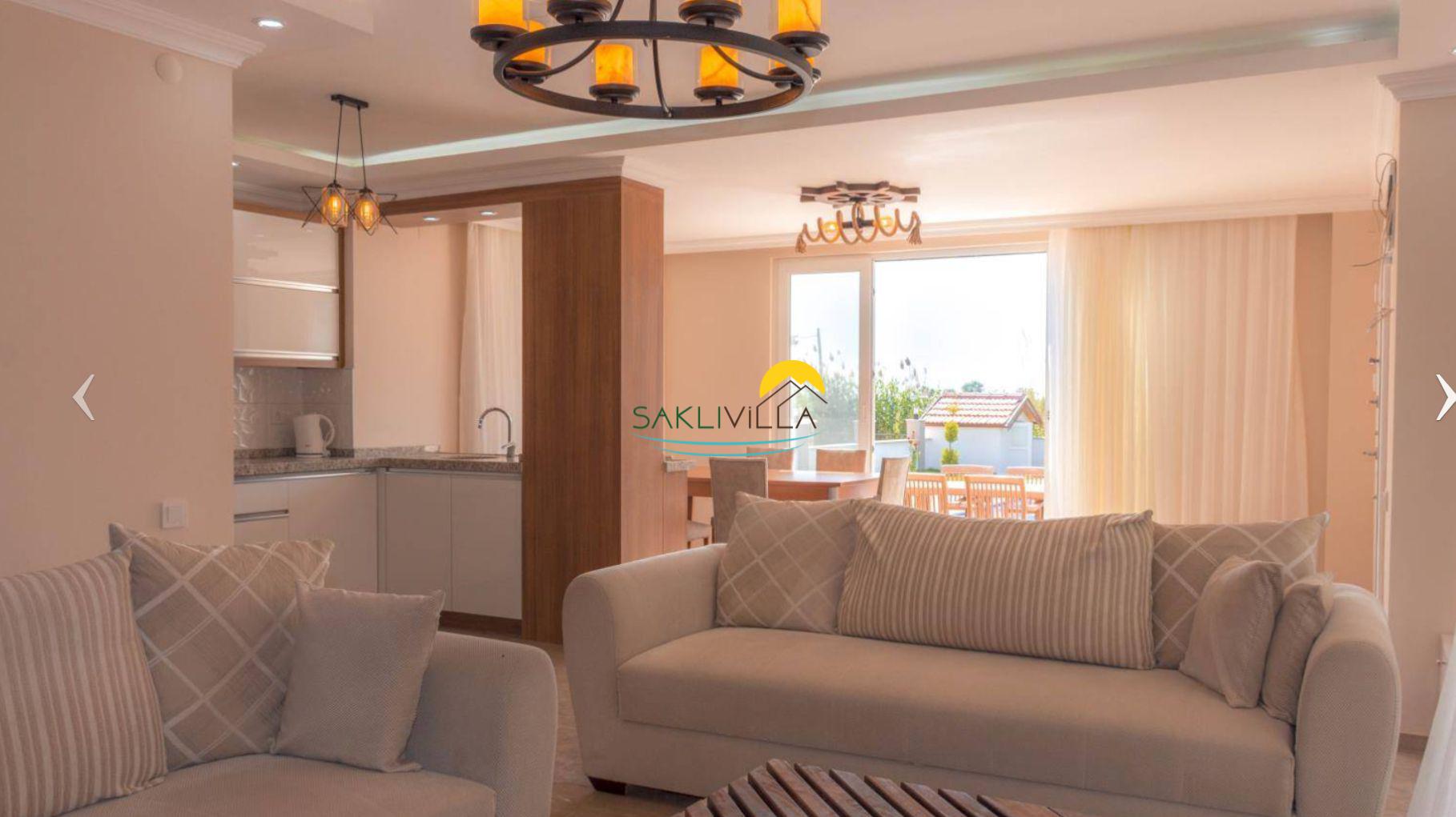 Salon: Salon içerisinde oturma grubu, LCD TV , DVD oynatıcı, şömine, 6 kişilik yemek masası ve sandalye, klima, kablosuz modem bulunmaktadır.