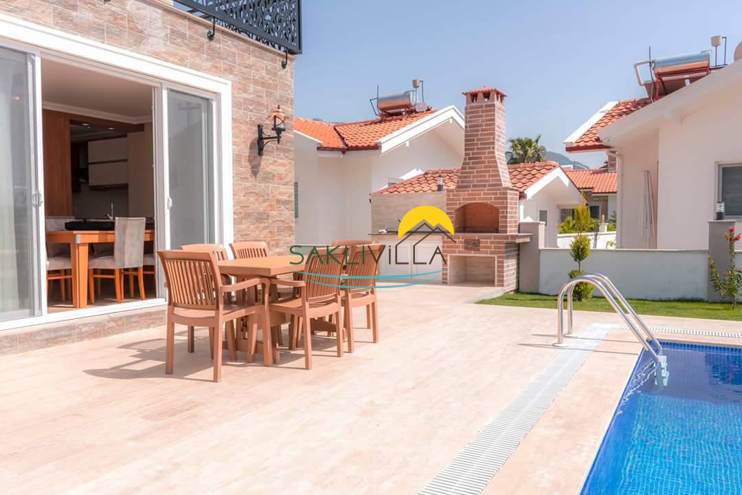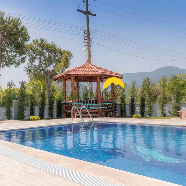 Bahçe : Yeşil bahçesinde özel yüzme havuz bulunmaktadır. Havuz terasında barbekü , 6 kişilik, masa sandalye , 5 adet şezlong, şemsiye ve kamelya mevcuttur.