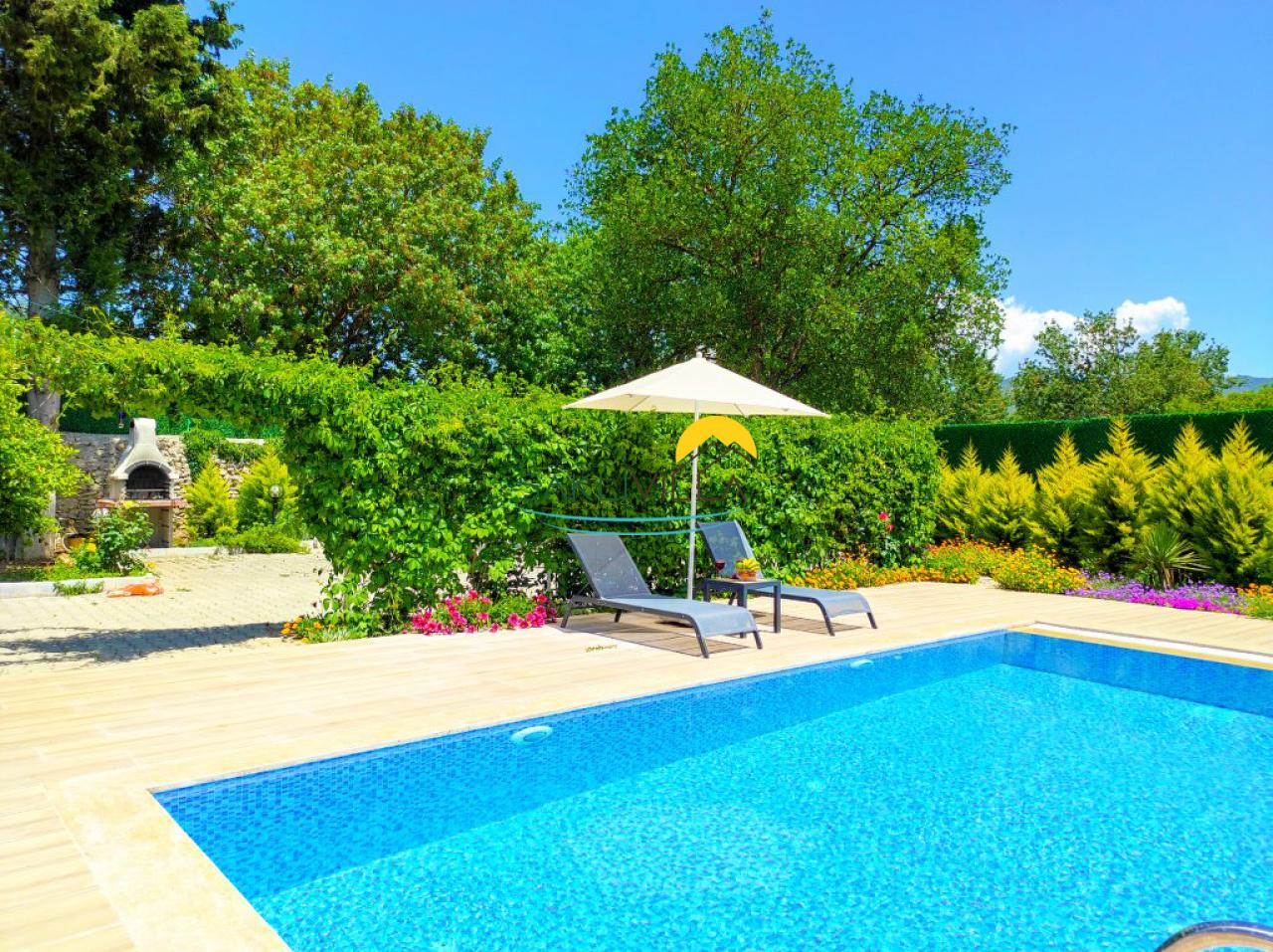 Villa Limon'un öne çıkan özelliklerinden biri de özel korunaklı havuzudur. Bu havuz, konuklara özel bir alan sunarak tatilin keyfini çıkarmalarını sağlarken havuzun etrafındaki şezlonglar ve oturma alanları, güneşlenme ve dinlenme imkanı sunarak konuklara rahat bir tatil deneyimi yaşatır.