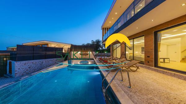 Modern ve lüks bir mimari yapıya sahip olan villamız, tüm detaylarıyla göz doldurmaktadır. Dubleks yapı özelliği, geniş ve ferah bir yaşam alanı sunarken, kaliteli eşyalarla döşenmiş iç mekan, misafirlerin her ihtiyacını karşılamak üzere tasarlanmıştır. Villamızın tasarımında kullanılan renk tonları ve malzemeler, sıcak ve davetkar bir atmosfer yaratmaktadır.