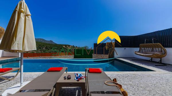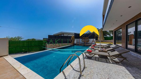 Modern ve lüks bir mimari yapıya sahip olan villamız, tüm detaylarıyla göz doldurmaktadır. Dubleks yapı özelliği, geniş ve ferah bir yaşam alanı sunarken, kaliteli eşyalarla döşenmiş iç mekan, misafirlerin her ihtiyacını karşılamak üzere tasarlanmıştır. Villamızın tasarımında kullanılan renk tonları ve malzemeler, sıcak ve davetkar bir atmosfer yaratmaktadır.