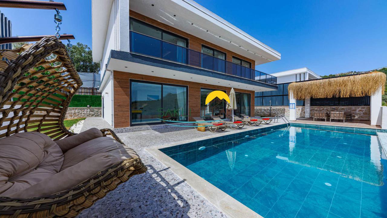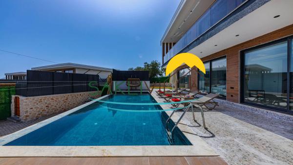Modern ve lüks bir mimari yapıya sahip olan villamız, tüm detaylarıyla göz doldurmaktadır. Dubleks yapı özelliği, geniş ve ferah bir yaşam alanı sunarken, kaliteli eşyalarla döşenmiş iç mekan, misafirlerin her ihtiyacını karşılamak üzere tasarlanmıştır. Villamızın tasarımında kullanılan renk tonları ve malzemeler, sıcak ve davetkar bir atmosfer yaratmaktadır.