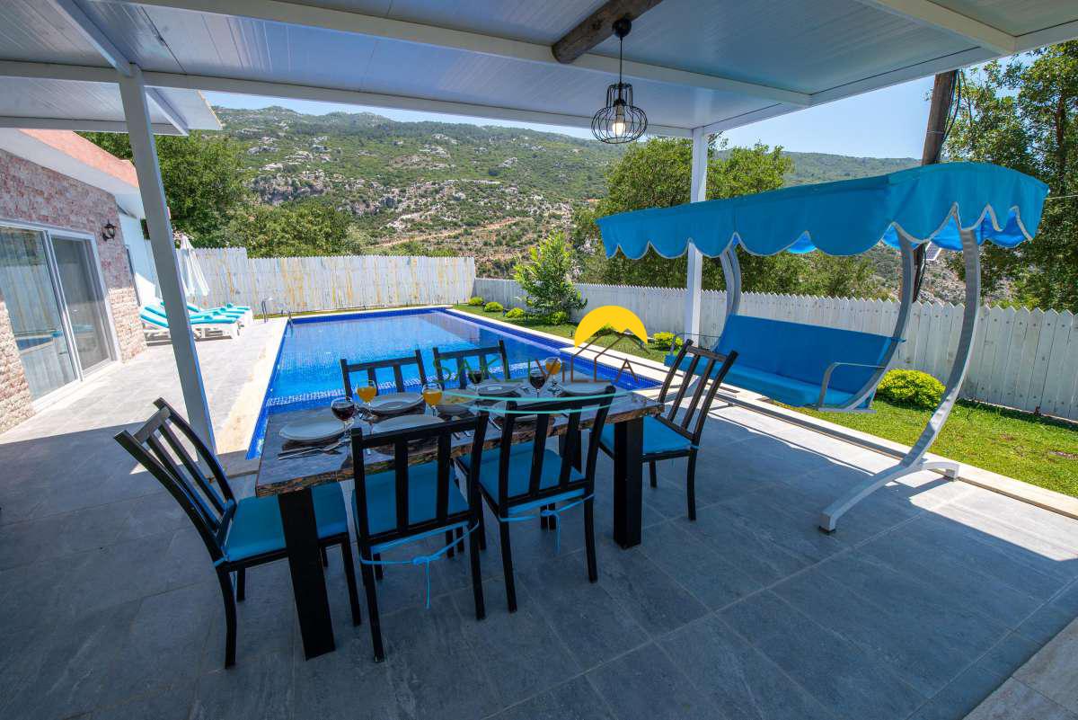 Kiralık Villamız, konum olarak hem doğanın huzurunu hem de doğa manzarasınınkeyfini çıkarma imkanı sunarken, çevresindeki doğal güzelliklerle de birbirini tamamlayıcı bir bütünlük arz etmektedir. Kalkan, zeytin ağaçları, çam ormanları ve akdeniz bitki örtüsü ile çevrili bir bölge olup, ziyaretçilerine turistik faaliyetlerin yanı sıra eşsiz bir doğa deneyimi yaşatmaktadır. Villa Maram, yüksek kaliteli mimarisiyle, bu doğal güzelliklerin içinde kaybolmadan, konforlu ve özel bir tatil yapma imkanı sunmaktadır.