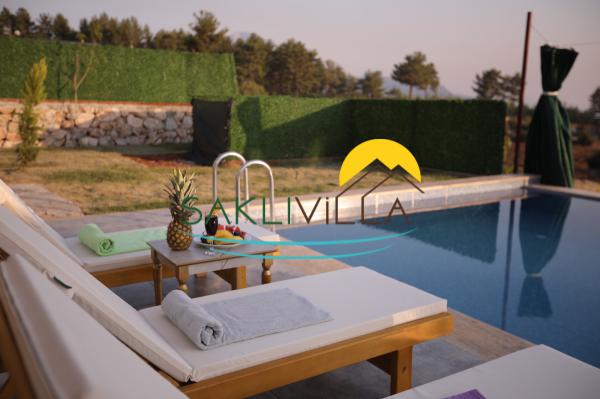 Korunaklı özel havuza sahip ve aynı zamanda jakuzili ve çocuk havuzlu lüks bir villadır. Çam ormanlarının içerisinde bulunan villamızda ve korunaklı olma özelliği ile muhafazakar çiftler aileler ve balayı tatili için oldukça uygundur.