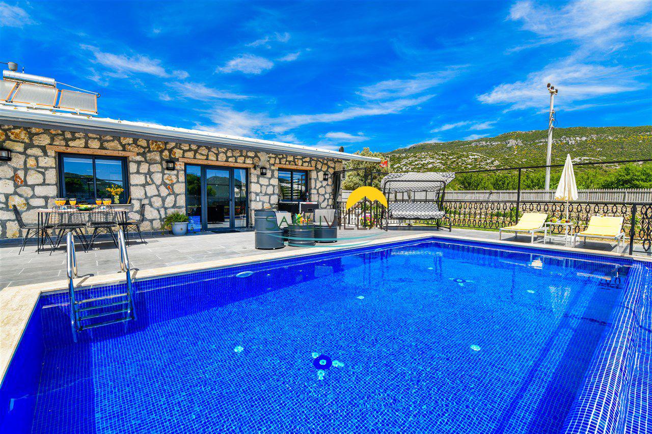 Villa Mavi Boncuk; Kalkan'ın Bezirgan mevkisinde doğa ile iç içe, korunaklı havuzlu, jakuzili, taş işçiliğinin modern mimariyle birleştirilmesi ortaya çıkmış, huzuru ve sessizliği sonuna kadar hissedebileceğiniz yazlık kiralık villalarımız arasındadır.