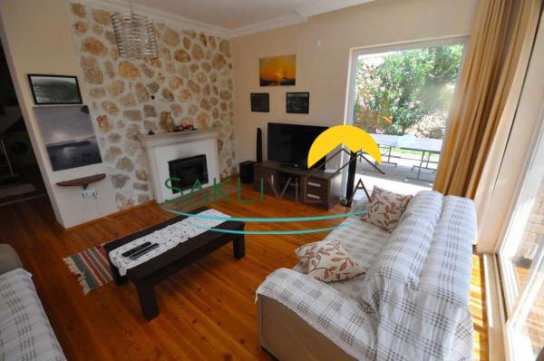 Salon; Villamızın salonunda, oturma grubu, klima, sehpa, TV, uydu alıcı, kablosuz modem yer almaktadır.