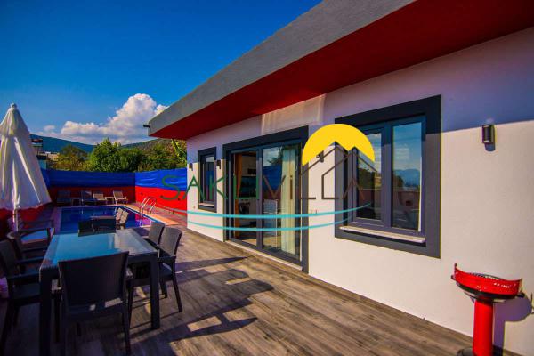 Havuz;Villamızın bahçesi içerisinde korunaklı özel havuz bulunmaktadır. Uzunluk: 10 metre, Genişlik: 3.30 metre, Derinlik: 1.45 metredir. Havuz terasında güneşlenme alanı, özel korunaklı havuz şezlonglar, güneş şemsiyesi, 4 kişilik yemek masası, oturma grubu bulunmaktadır.