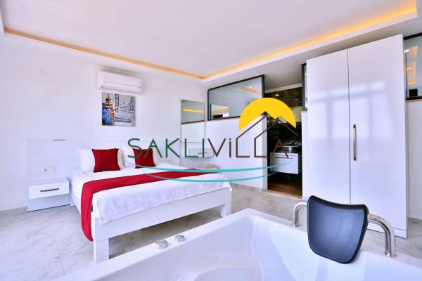 1.Yatak Odası: 1 adet çift kişilik yatak, klima, komodin, makyaj masası, elbise dolabı, jakuzi, banyo ve tuvalet bulunmaktadır