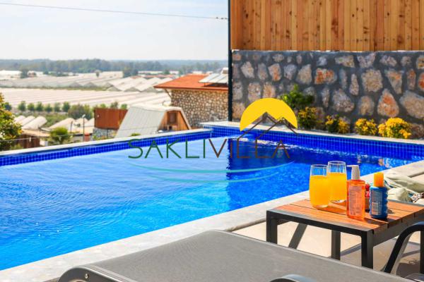 Salon: Salonumuzda rahat, kaliteli, lüks oturma grubu, klima, tv ve uydu alıcısı, sınırsız kablosuz internet, banyo ve tuvalet, sauna, havuz başına ve bahçeye çıkış vardır.