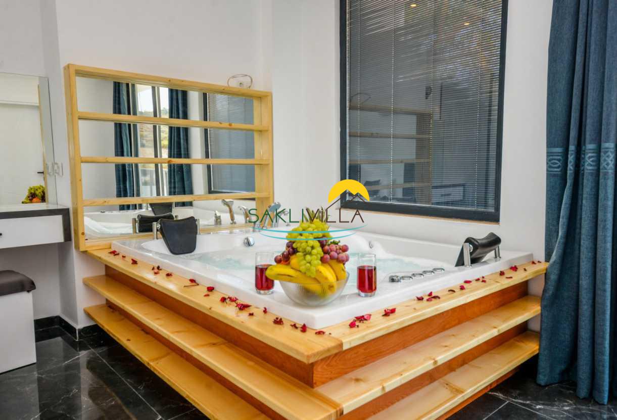 Villa Nar Tanesi'nin en dikkat çekici özelliklerinden biri, korunaklı havuzu ve çift kişilik jakuzisiyle lüks ve rahatlığın mükemmel bir buluşması sunmasıdır. Bu özel yapı, doğanın güzellikleriyle iç içe, özel bir atmosferde sakinlik arayan çekirdek aileler için ideal bir konaklama seçeneği sunmaktadır.