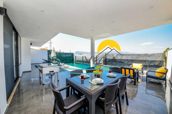 Havuz Terası:Terasında özel yüzme havuzu, şezlonglar, güneş şemsiyeleri, masa ve sandalyeler, mangal bulunmaktadır.