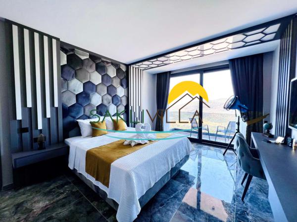 Özel konumu sebebiyle büyüleyici deniz manzarasına sahip olan villamızın her bir köşesinden muhteşem manzarayı seyredebilmeniz mümkündür. Modern mimarisi, şık tasarımı ve lüks tasarımı ile oldukça dikkat çeken ve bölgenin en lüks villalarından bir tanesi olan jakuzi, sauna, Türk hamamı ve ısıtmalı kapalı havuz gibi lüksözelliklere sahip kiralık villamızda bulunan eşyaların tümü konforlu ve birinci kalitededir.