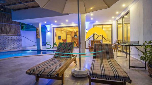 Havuz : Villamızın bahçesi içerisinde korunaklı özel havuz bulunmaktadır. Havuz ve bahçe bakımı günde bir sefer sabah erken saatlerde yapılmaktadır.