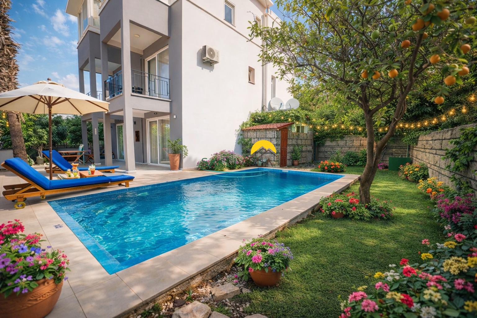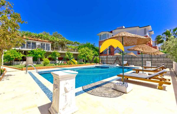 Özellikler: Özel açık yüzme havuzu, güneşlenme alanı, şezlonglar, özel bahçe, özel park yeri ve mangal alanı.