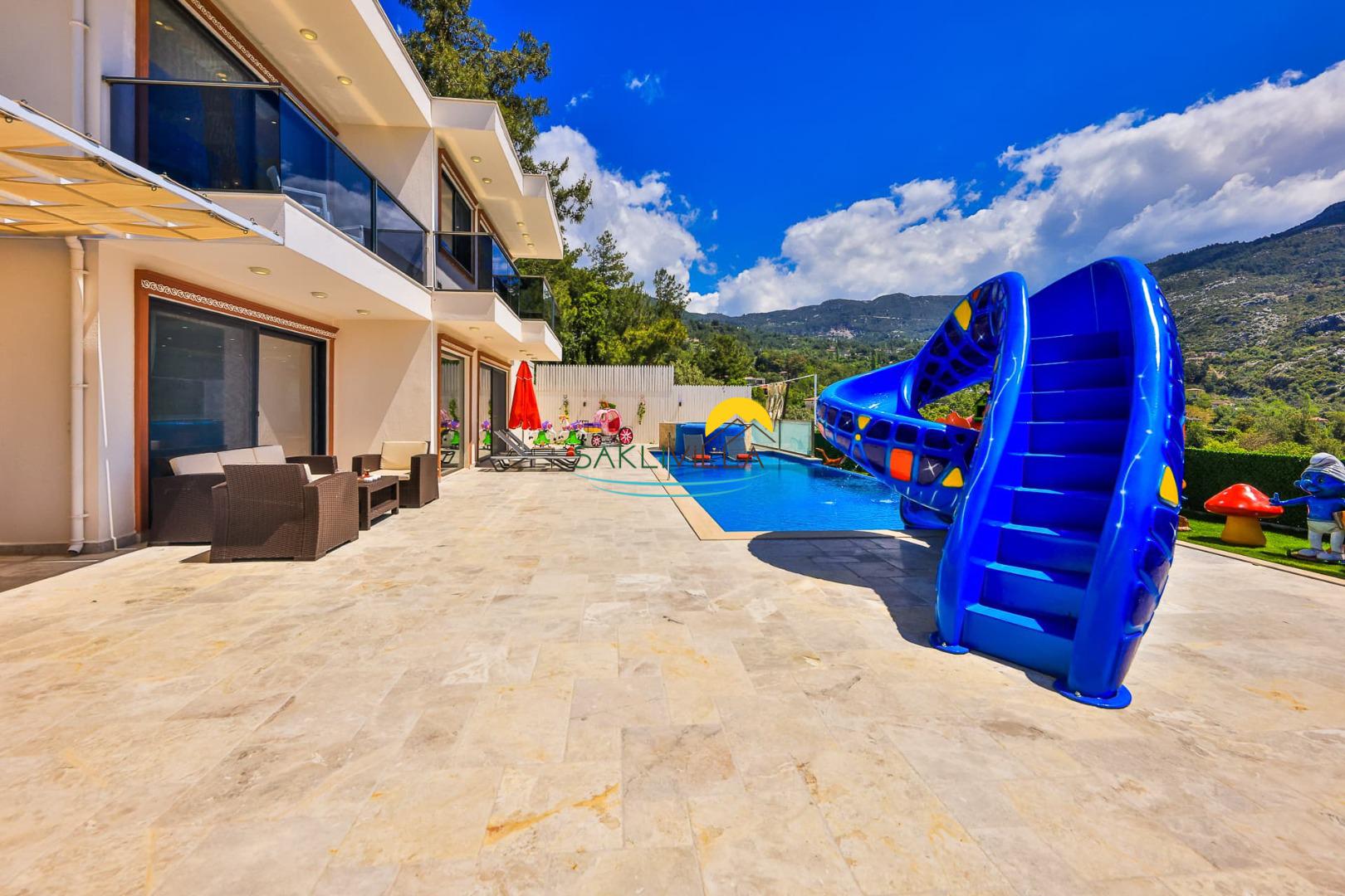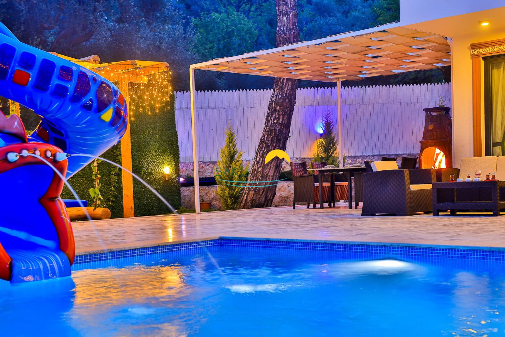 Geniş verandası, özel havuzu ve birçok sosyal alanı ile Peri Masalı, tatiliniz boyunca hem eğlenmenize hem de dinlenmenize imkan tanır. Kapalı havuz, jakuzi ve sauna gibi modern olanaklar, stresli bir günün ardından sizin ve sevdiklerinizin rahatlamasını sağlarken; çocuk oyun alanı ve büyük su kaydırağı, ailenizin en küçük üyeleri için eğlenceli vakit geçirme şansı sunar. Söz konusu yazlık villa tatili olduğunda, her yaştan misafirimizin ihtiyaçlarının ve konforunun göz önünde bulundurulması, Peri Masalı'nın ayırt edici özelliklerinden biridir.