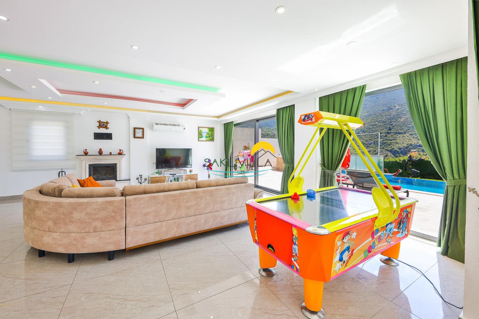 Villamızın iç mekan tasarımı, renkli ve keyifli bir atmosfer yaratmak üzere özenle yapılmıştır. Kaliteli ve lüks eşyalarla döşenmiş olan Peri Masalı, misafirlerimizin konforunu ön planda tutmakta ve her detayına büyük bir titizlikle yaklaşılmıştır. Girişte karşılaşacağınız ferah salon, rahat oturma alanları ve şık dekorasyon öğeleri ile dikkatinizi çekecek. Mutfak alanı ise modern ekipmanlarla donatılmış olup, yemeklerinizi rahatlıkla hazırlayabileceğiniz bir alan sunmaktadır.