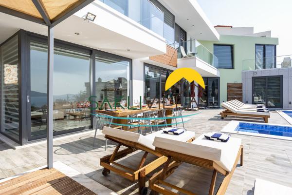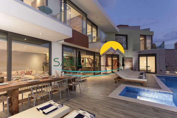 Özellikler: Özel açık yüzme havuzu, güneşlenme alanı, şezlonglar, özel bahçe, özel park yeri ve mangal alanı.