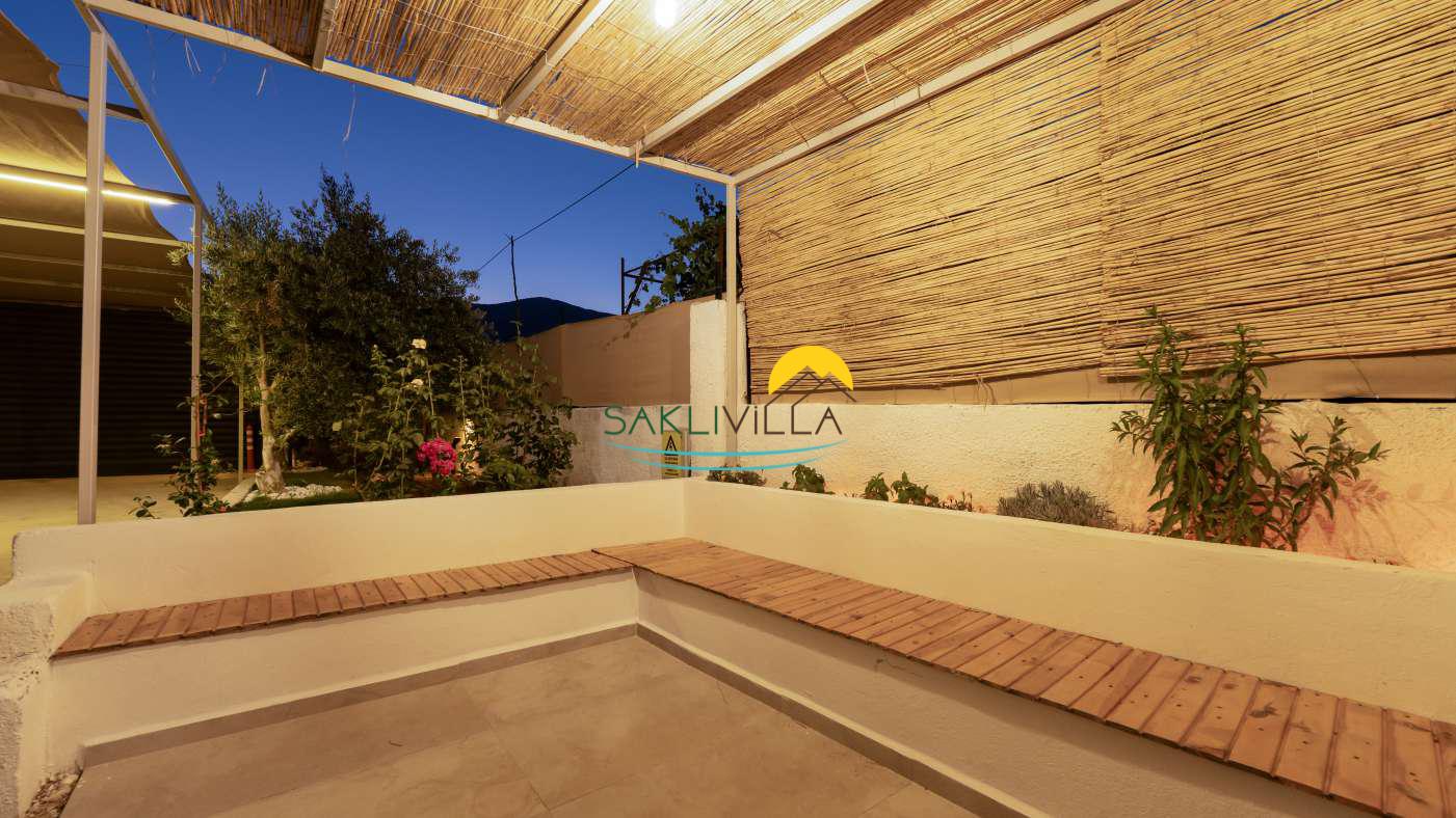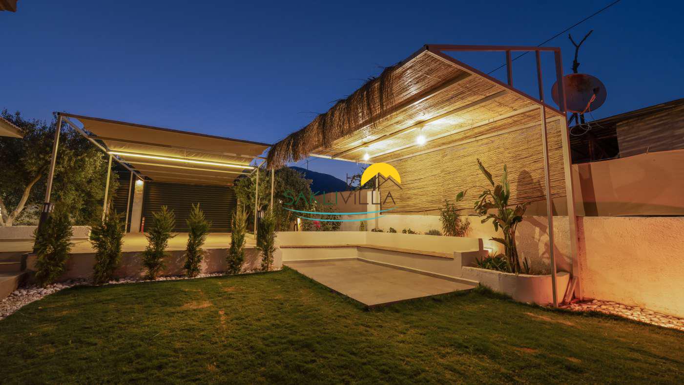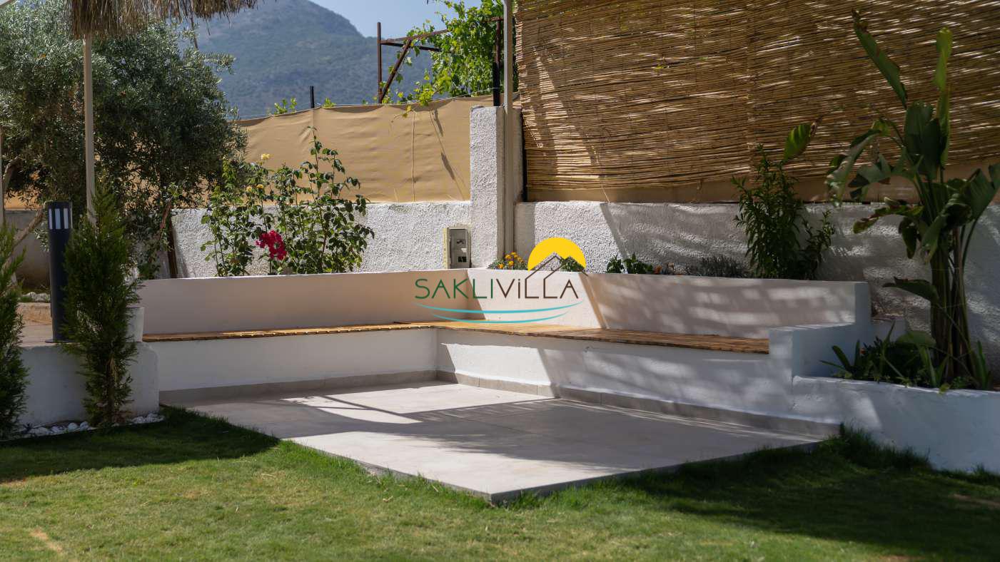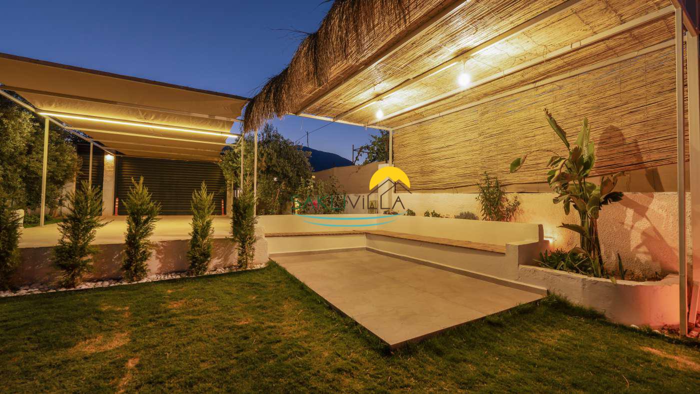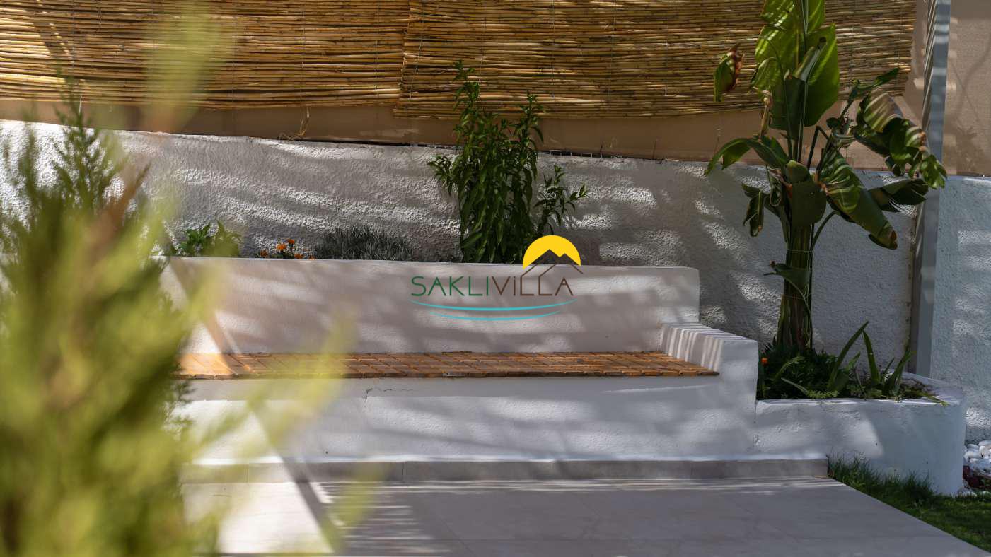 Villanın geniş bahçesi ve teras alanı, açık havada vakit geçirmek isteyenler için tasarlanmıştır. Doğal yaşamın içinde bulunan bahçe, misafirlere sabah kahvaltılarını, akşam yemeklerini ya da sadece doğa manzarasına karşı dinlenmeyi mümkün kılar.