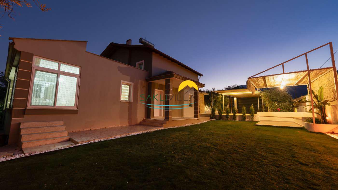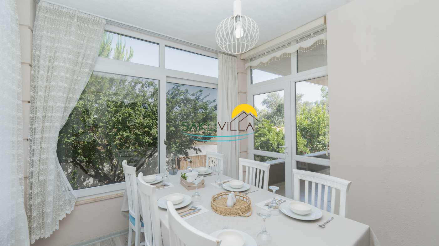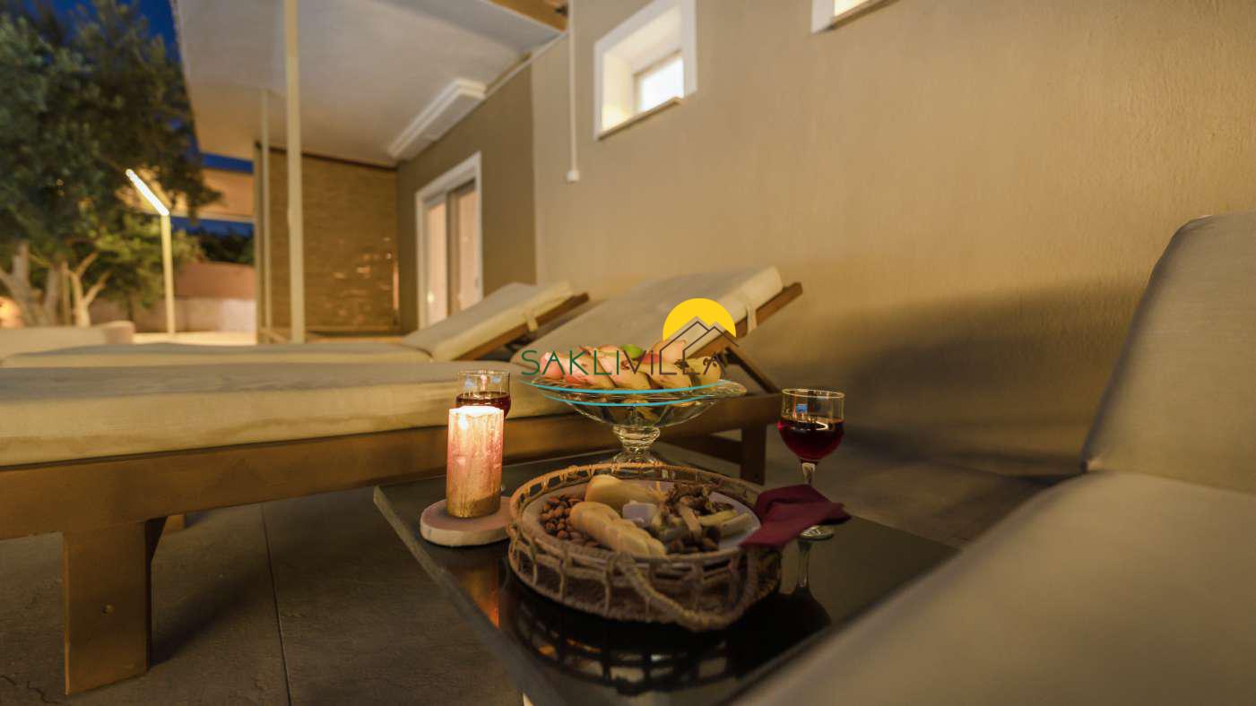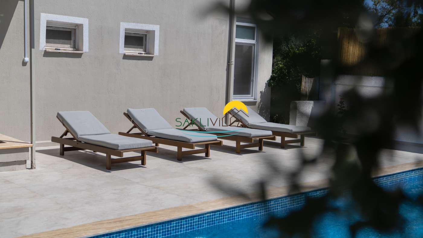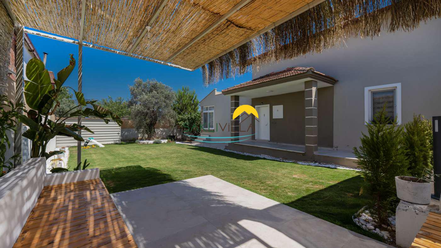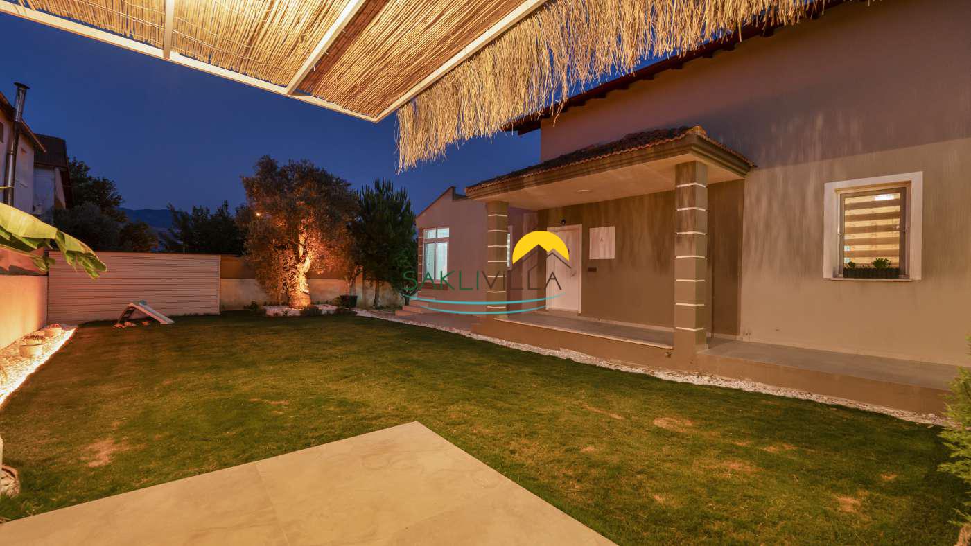 Villanın geniş bahçesi ve teras alanı, açık havada vakit geçirmek isteyenler için tasarlanmıştır. Doğal yaşamın içinde bulunan bahçe, misafirlere sabah kahvaltılarını, akşam yemeklerini ya da sadece doğa manzarasına karşı dinlenmeyi mümkün kılar.