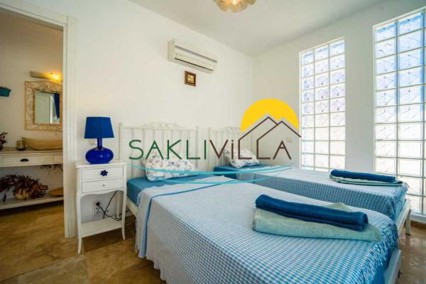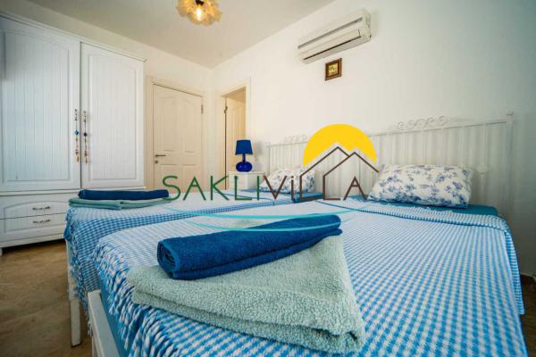 1.Yatak Odası : Genç Yatak Odası olup içerisinde 2 Adet tek kişilik yatak, Komidin, Klima, Elbise dolabı, Makyaj masası, Banyo, Havuz terasına çıkış bulunmaktadır.