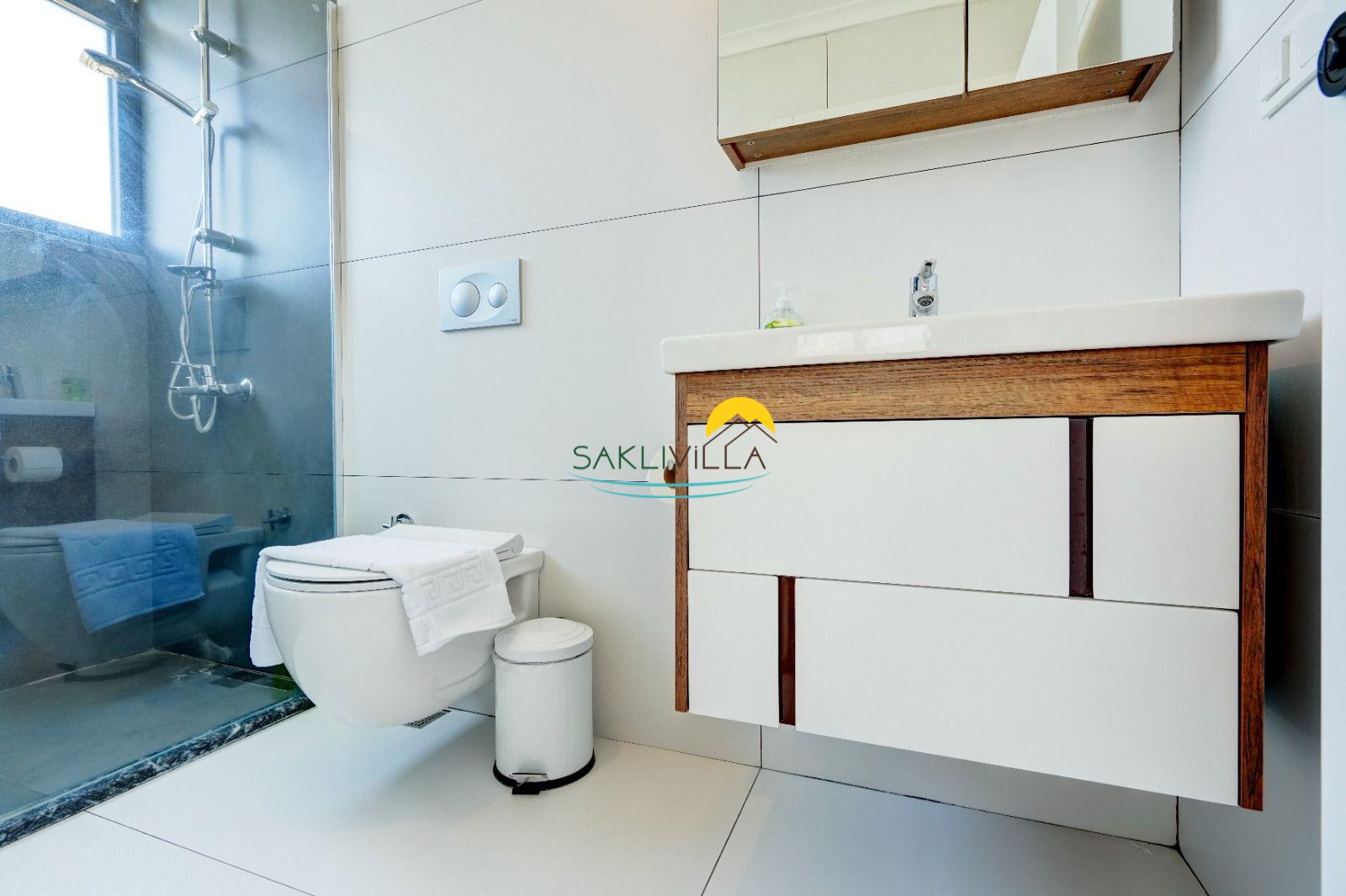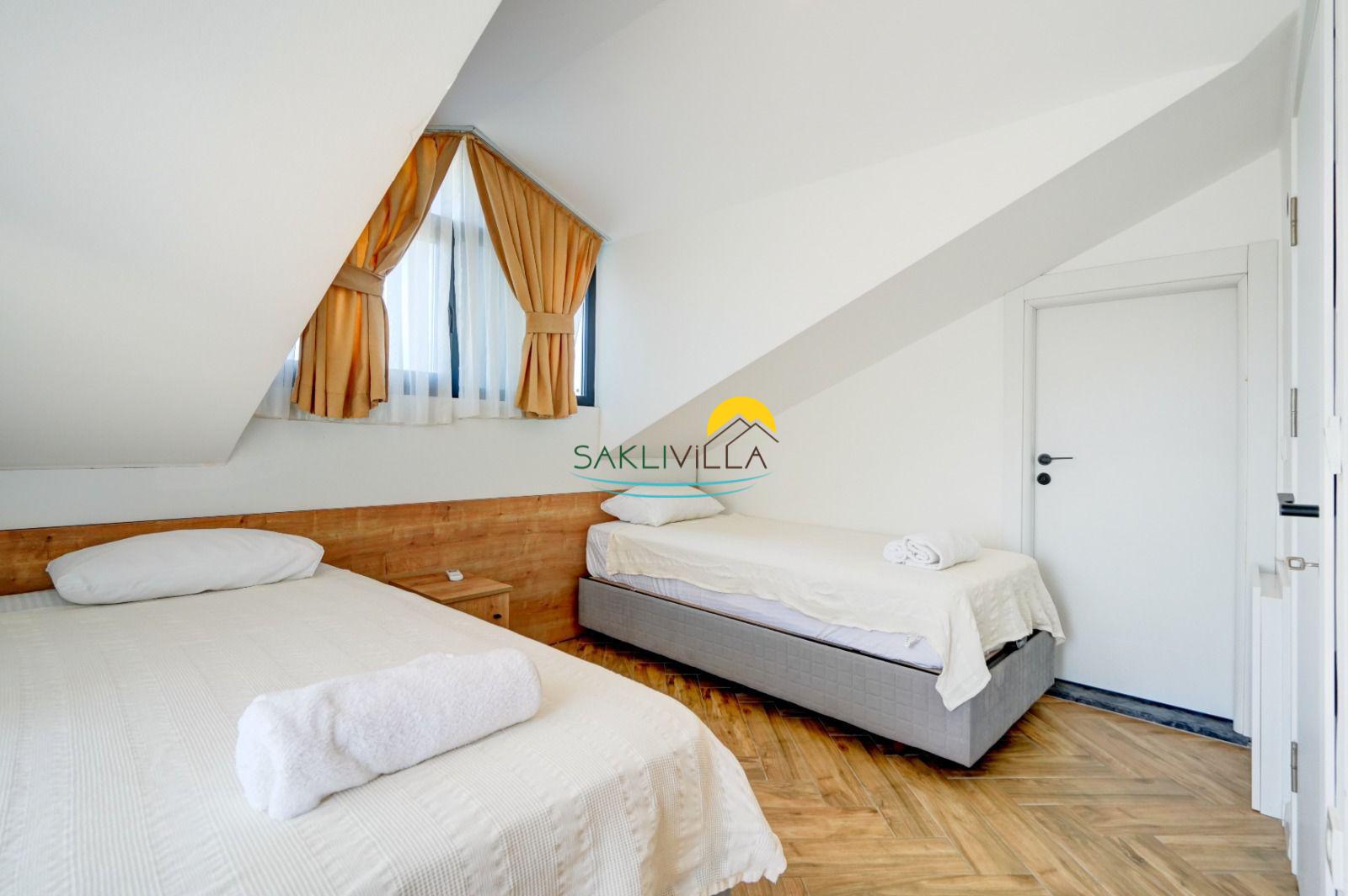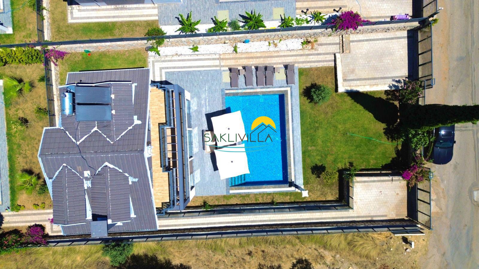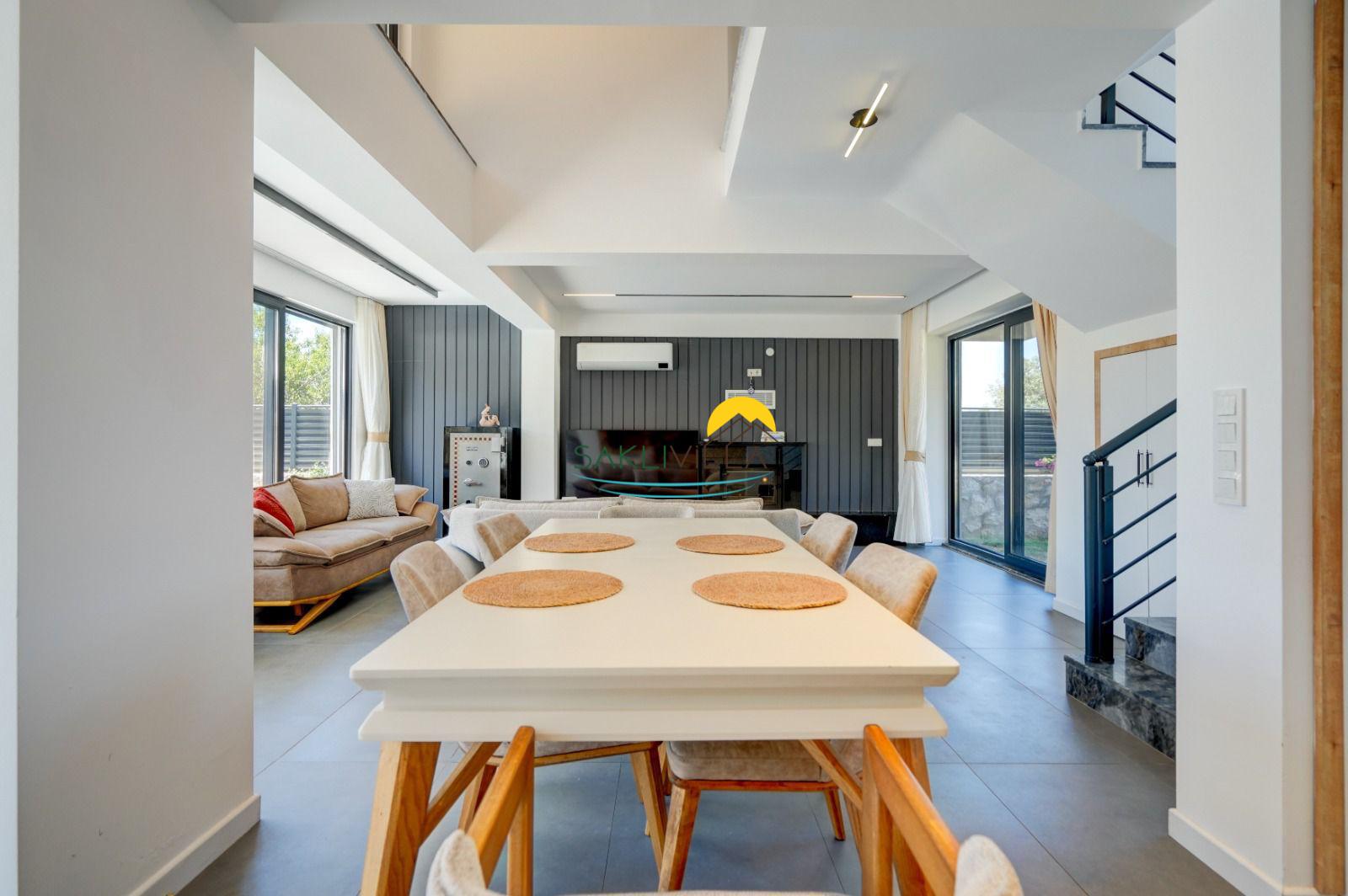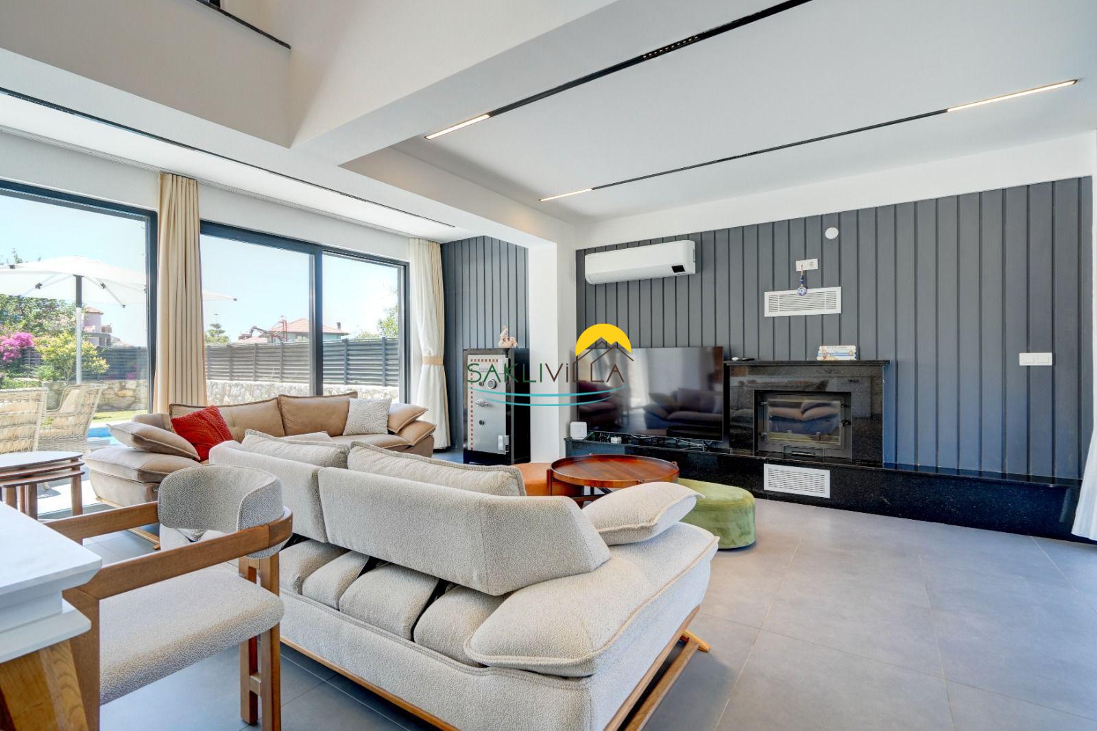 Bir başka dikkat çekici özellik ise villa içerisinde yer alan özel yüzme havuzudur. Havuzun yanı sıra villa çevresinde bulunan geniş çim bahçe, açık hava aktiviteleri, dinlenme ve sosyal etkinlikler için elverişli bir alan sunar. Bahçede çocuklar güvenle oynayabilir, aileler açık havada yemek ve kahvaltı yapabilir veya sadece doğanın keyfini çıkarabilirler. Bu geniş yeşil alan, doğallık ve ferahlık hissini artırarak tatilin kalitesini yükseltmektedir.