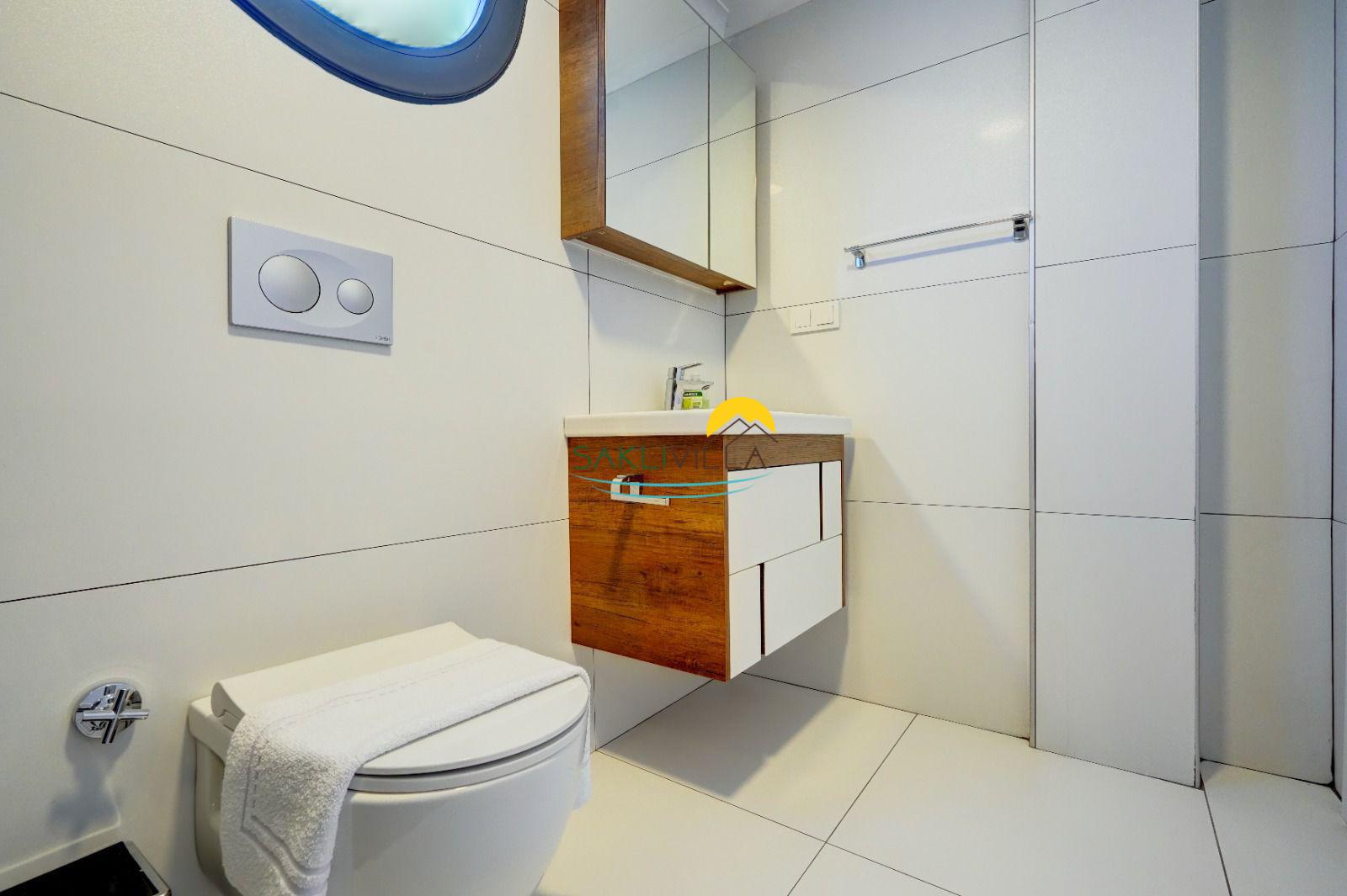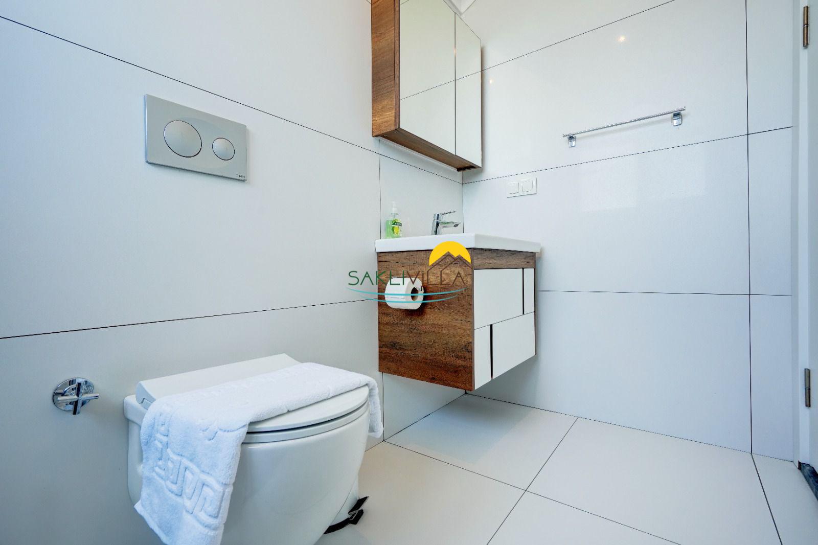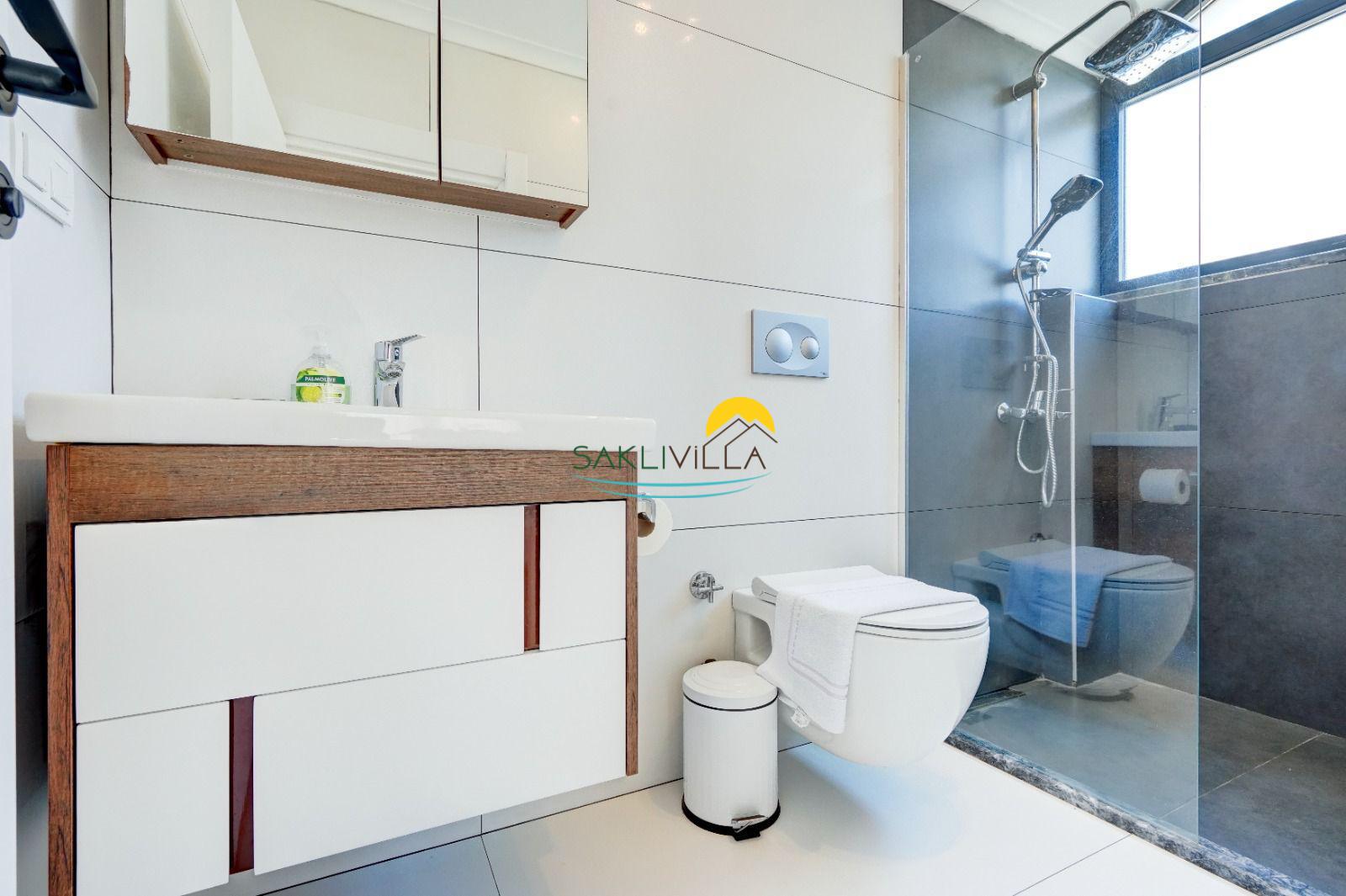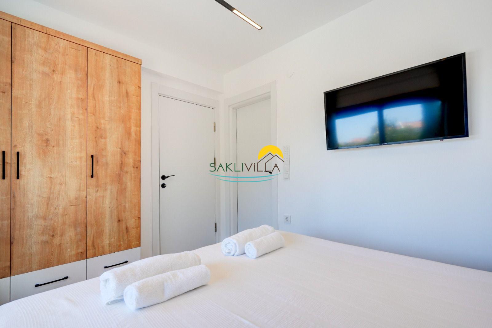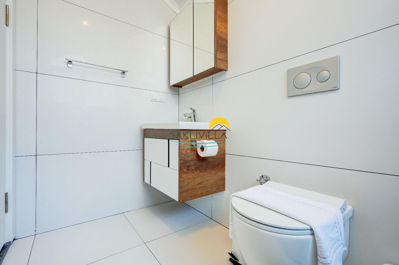 Bir başka dikkat çekici özellik ise villa içerisinde yer alan özel yüzme havuzudur. Havuzun yanı sıra villa çevresinde bulunan geniş çim bahçe, açık hava aktiviteleri, dinlenme ve sosyal etkinlikler için elverişli bir alan sunar. Bahçede çocuklar güvenle oynayabilir, aileler açık havada yemek ve kahvaltı yapabilir veya sadece doğanın keyfini çıkarabilirler. Bu geniş yeşil alan, doğallık ve ferahlık hissini artırarak tatilin kalitesini yükseltmektedir.