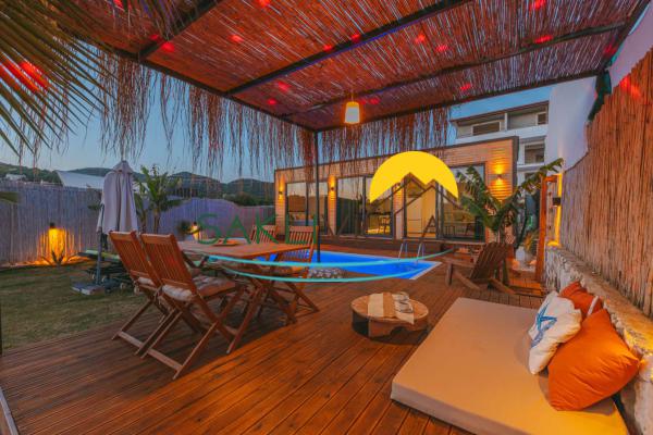 Villa Rigel'in en büyük özelliklerinden biri de korunaklı havuzu ve geniş bahçe alanıdır. Misafirler, havuzun keyfini çıkarırken güneşlenme alanında dinlenebilirler. Villamız, doğanın içinde huzurlu bir tatil geçirmek isteyenler için ideal bir seçenektir.