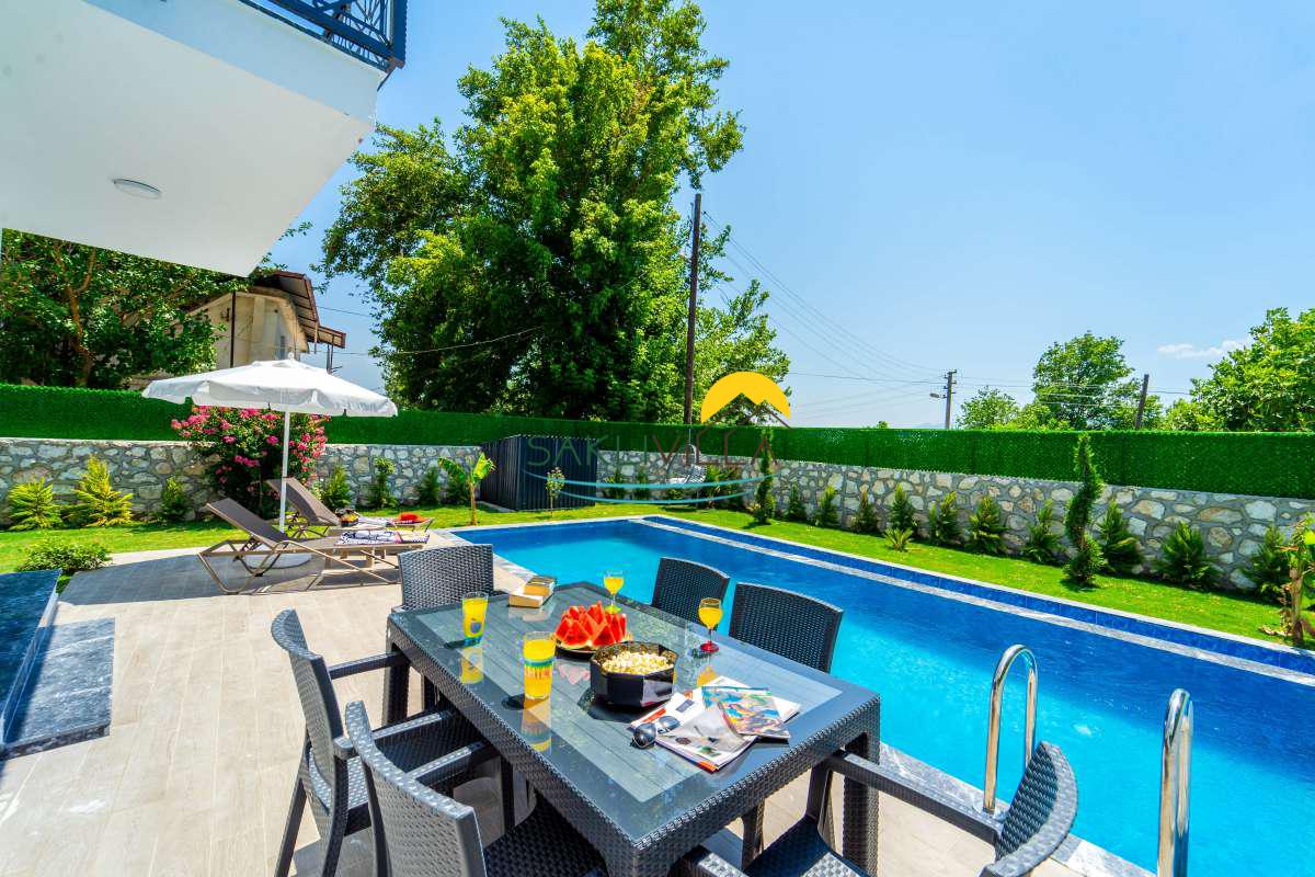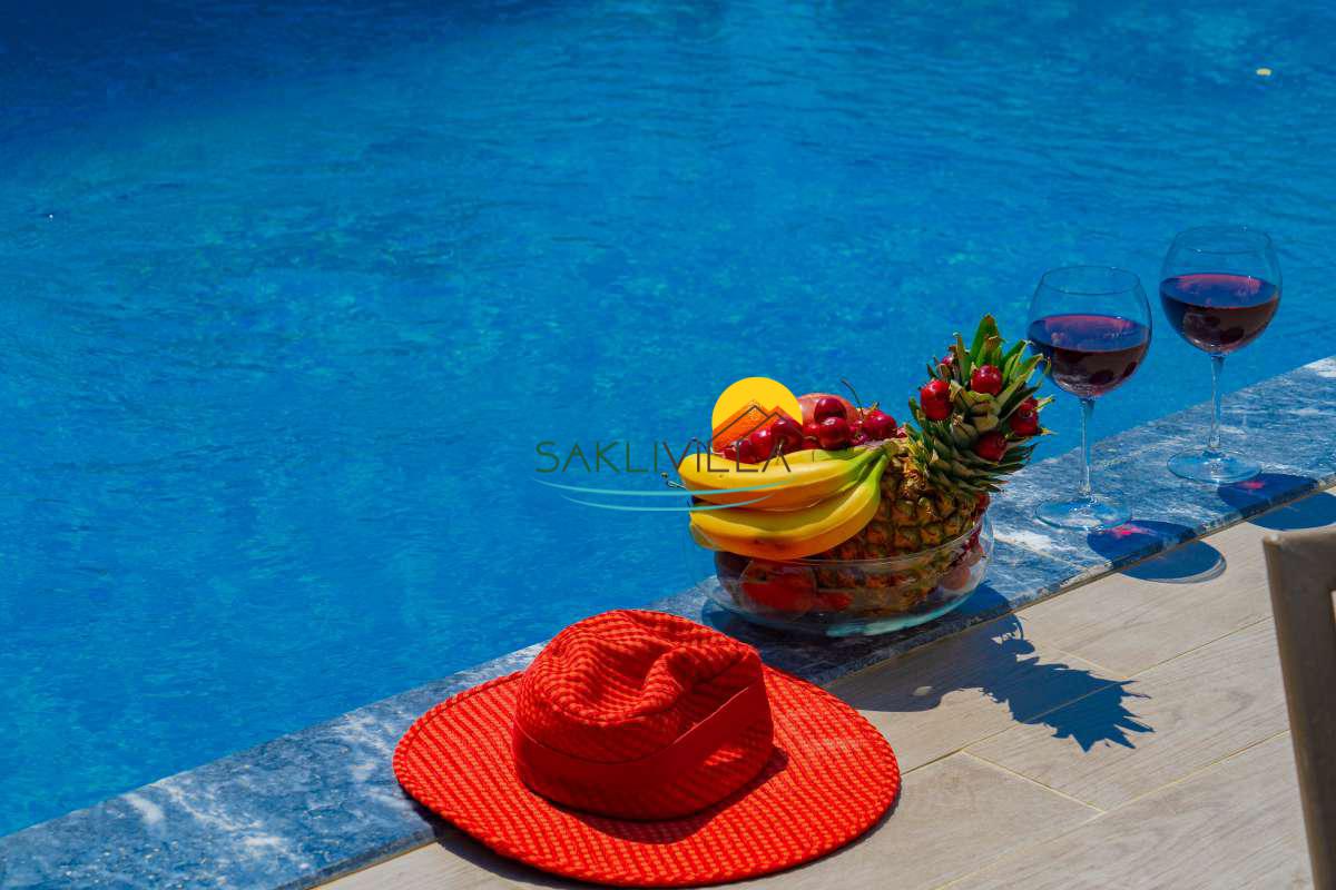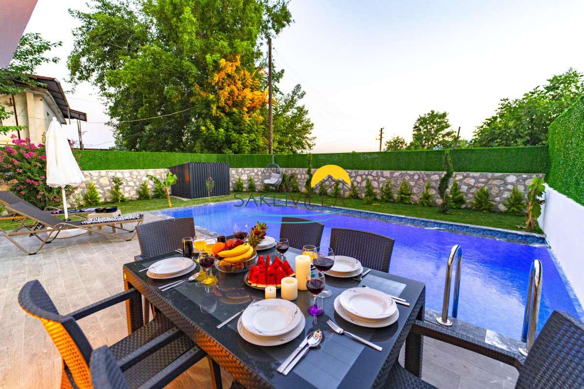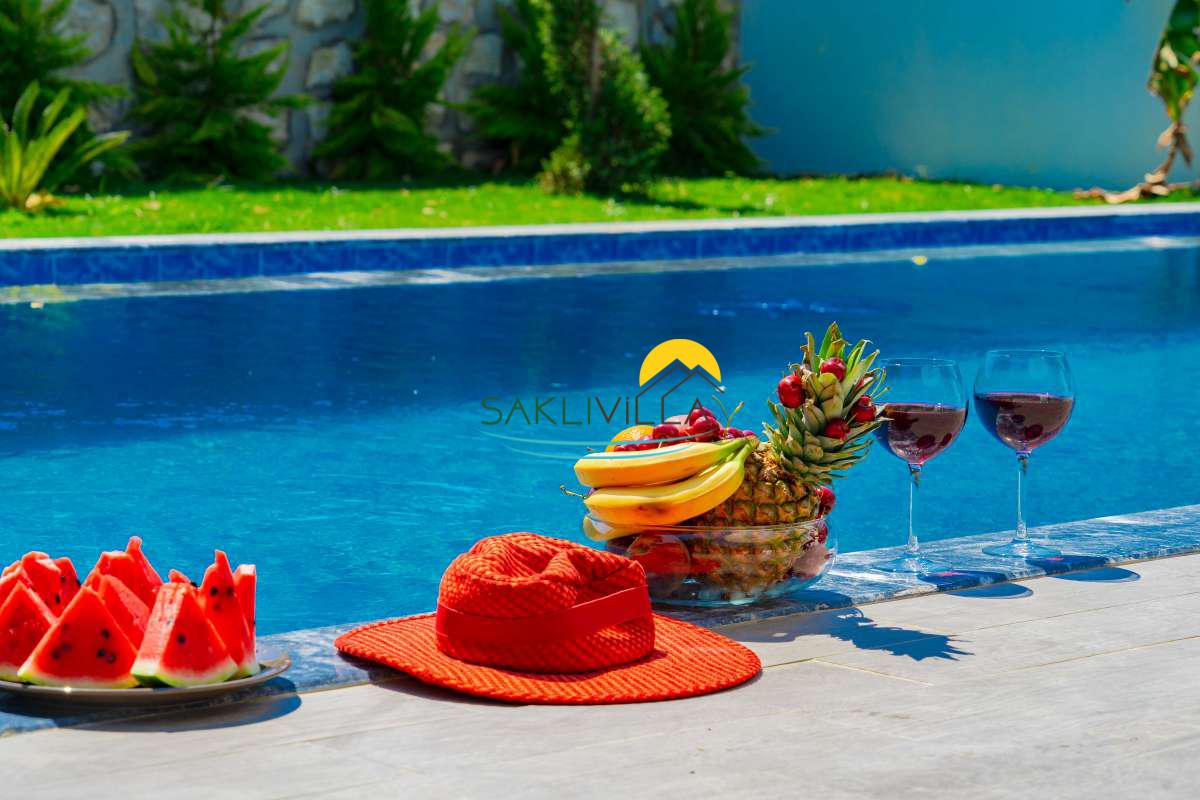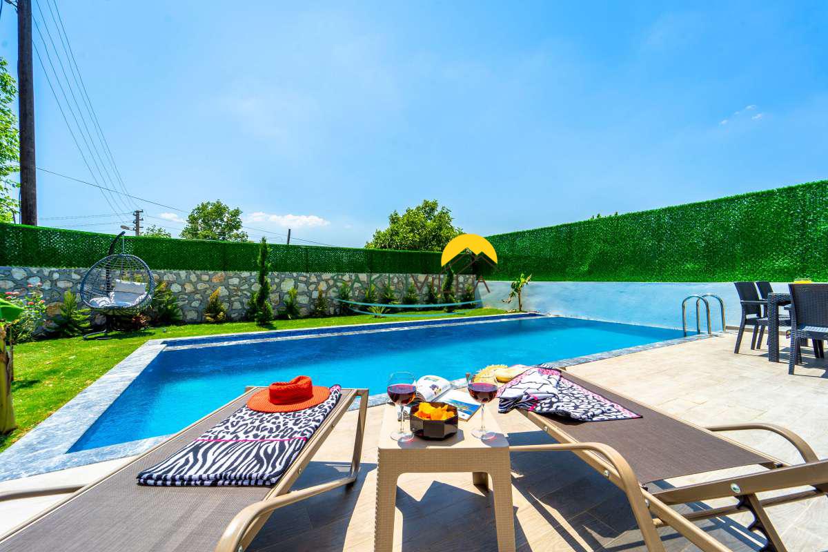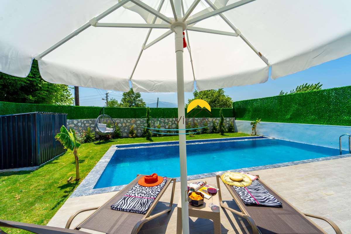Bu villanın en dikkat çekici özelliklerinden biri de özel havuzudur. Misafirler, kalabalıktan uzak ve sadece kendilerine ait olan bu havuzda serinleyerek, tatilin tadını çıkarabilmektedir. Havuz, bakımlı ve güvenli yapısıyla özenle korunmakta olup, özellikle sıcak yaz aylarında büyük bir konfor sağlamaktadır. Ayrıca, villa içerisinde bulunan geniş ve yeşilliklerle dolu bahçe alanı, doğayla iç içe, sakin ve huzurlu bir ortam sunmakta; açık havada kahvaltı yapma, kitap okuma veya akşamüstü sohbetleri için ideal bir mekân oluşturmaktadır.