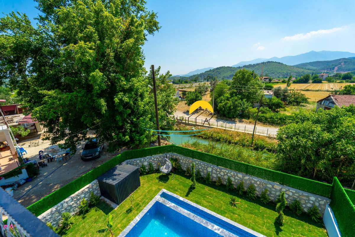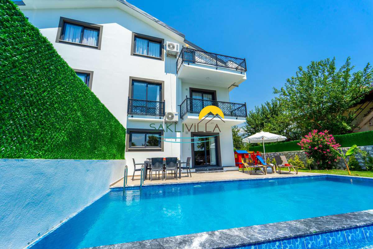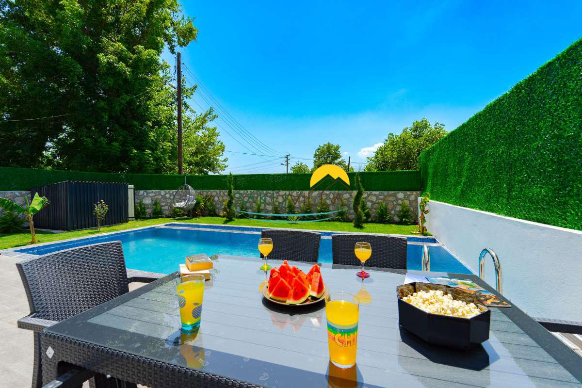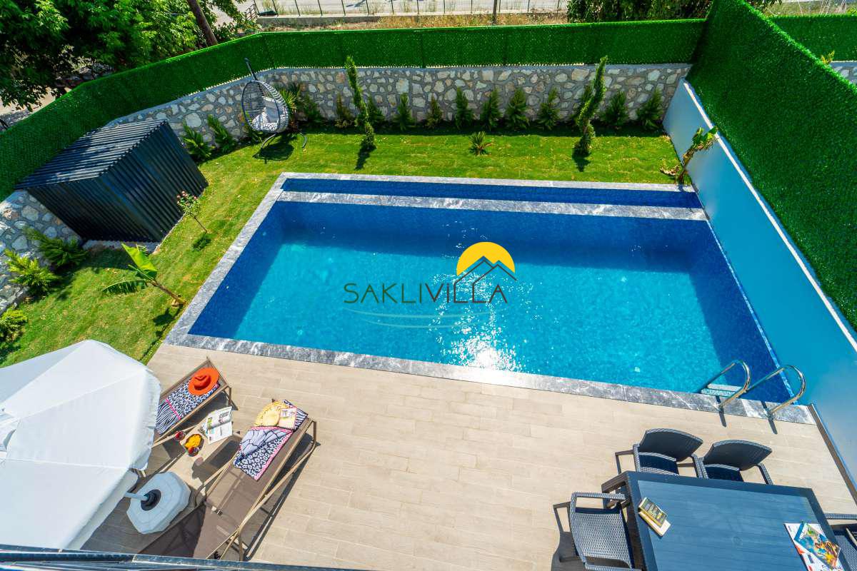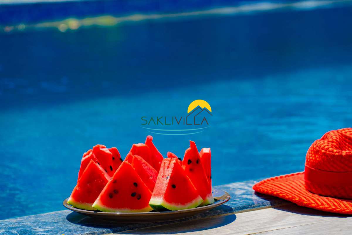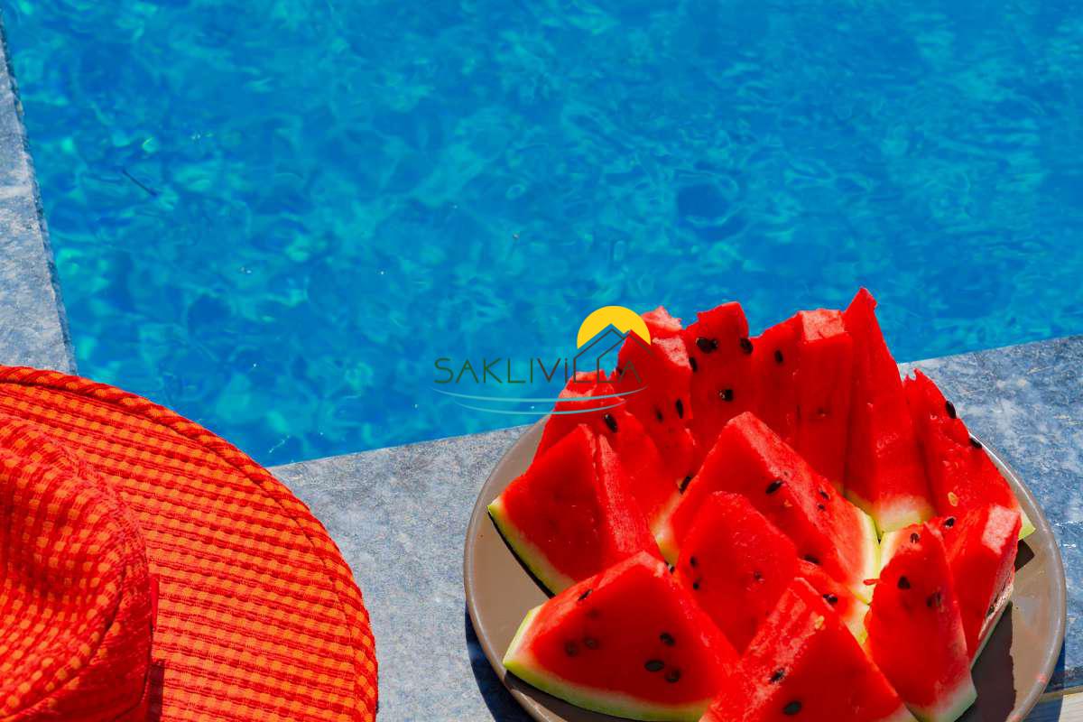 Bu villanın en dikkat çekici özelliklerinden biri de özel havuzudur. Misafirler, kalabalıktan uzak ve sadece kendilerine ait olan bu havuzda serinleyerek, tatilin tadını çıkarabilmektedir. Havuz, bakımlı ve güvenli yapısıyla özenle korunmakta olup, özellikle sıcak yaz aylarında büyük bir konfor sağlamaktadır. Ayrıca, villa içerisinde bulunan geniş ve yeşilliklerle dolu bahçe alanı, doğayla iç içe, sakin ve huzurlu bir ortam sunmakta; açık havada kahvaltı yapma, kitap okuma veya akşamüstü sohbetleri için ideal bir mekân oluşturmaktadır.