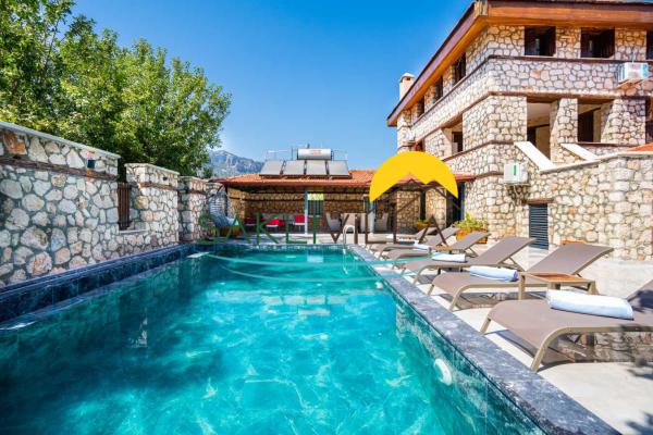 Villa Şah Bezirgan, Kalkan Bezirgan'da bulunan bir tatil konaklama tesisi olup, 3 yatak odası ve 6 kişi konaklama kapasitesine sahiptir. Kalkan'ın eşsiz doğasına sahip olan Bezirgan bölgesinde yer alan bu villa, muhafazakar bir yapıya sahip olup, taş mimarisi ve lüks tasarımı ile dikkat çekmektedir. Villa Şah, içerisinde bulunanısıtmalı havuz, hamam, sauna ve jakuzigibi konforlu olanaklar sayesinde yaz aylarında serinlemek ve kış aylarında keyifli bir tatil geçirmek isteyen misafirlerine mükemmel bir konaklama deneyimi sunmaktadır.