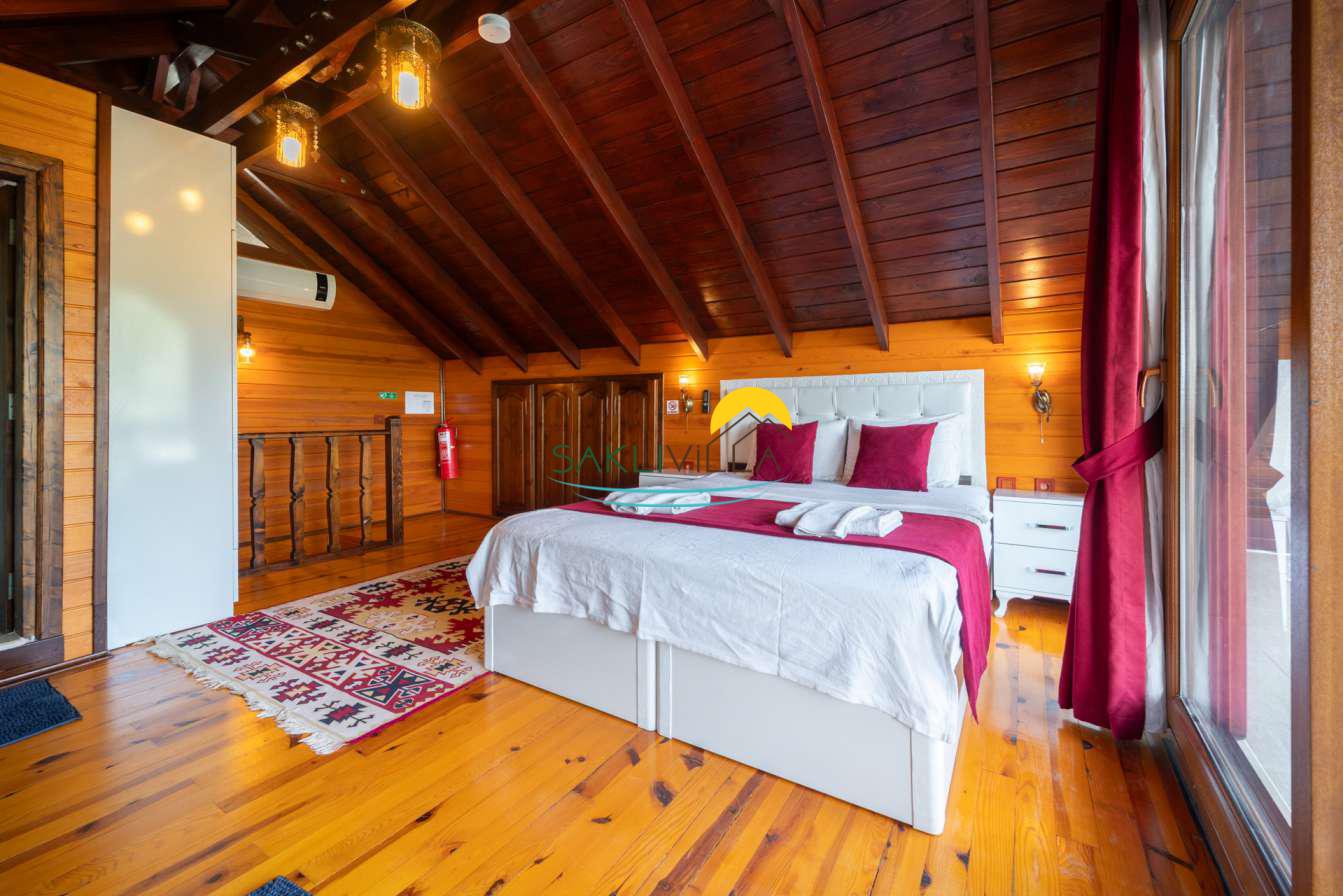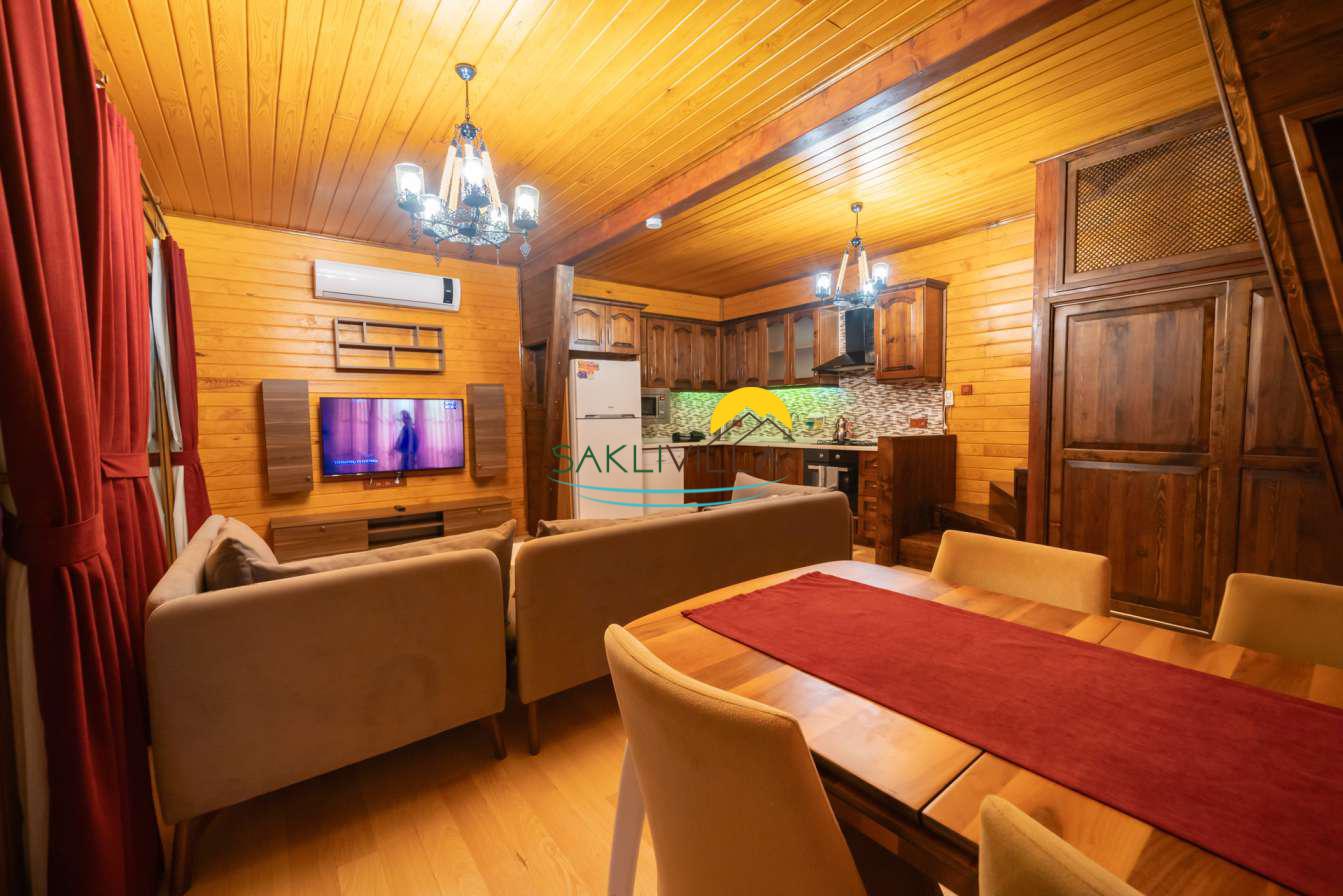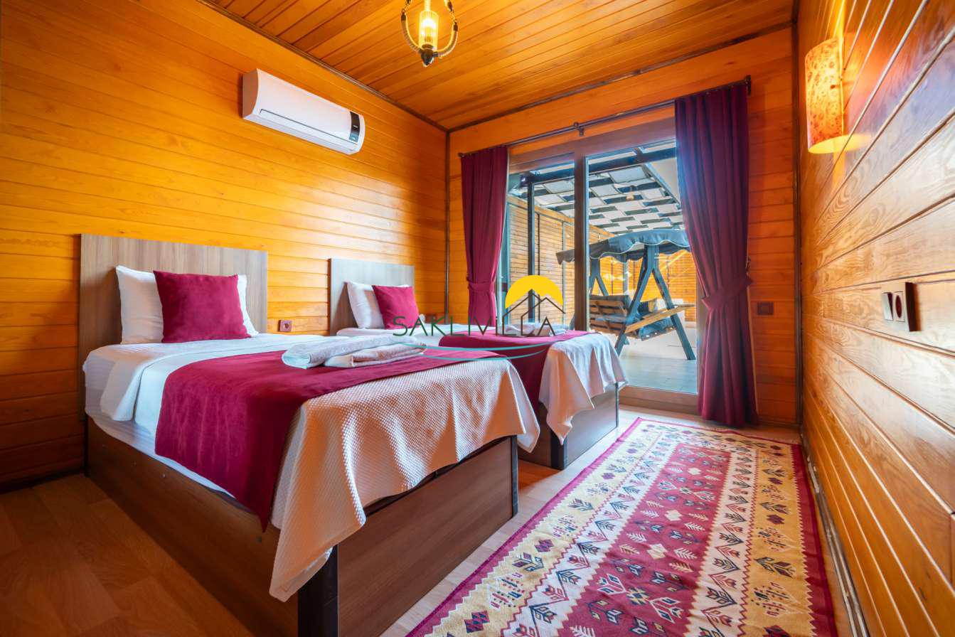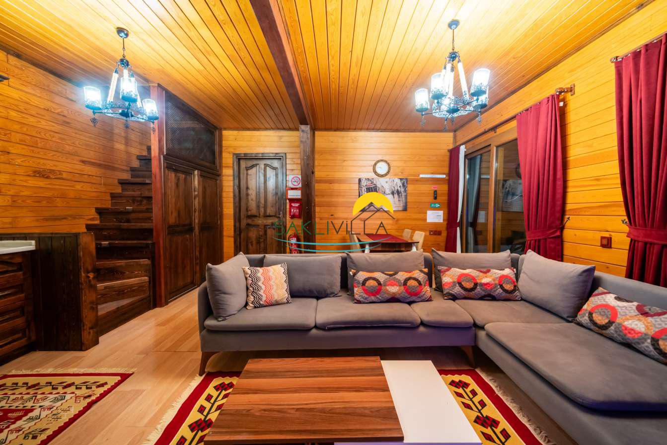 Ahşap mimarisi, doğanın estetiği ile bütünleşen bir tasarım anlayışını yansıtır. kiralık villa’nın iç mekanları da, modern konforu geleneksel bir atmosferle birleştirecek şekilde dekore edilmiştir. 2 yatak odası ve 4 kişi konaklama kapasitesi ile geniş bir aile ya da balayı çiftleri için ideal bir alan sunar. Her detayı düşünülmüş olan Villa Seyir, ferahlığı ve lüksü bir arada hissettirirken, misafirlere evlerinde gibi hissettirecek sıcak bir ortam sağlamaktadır.