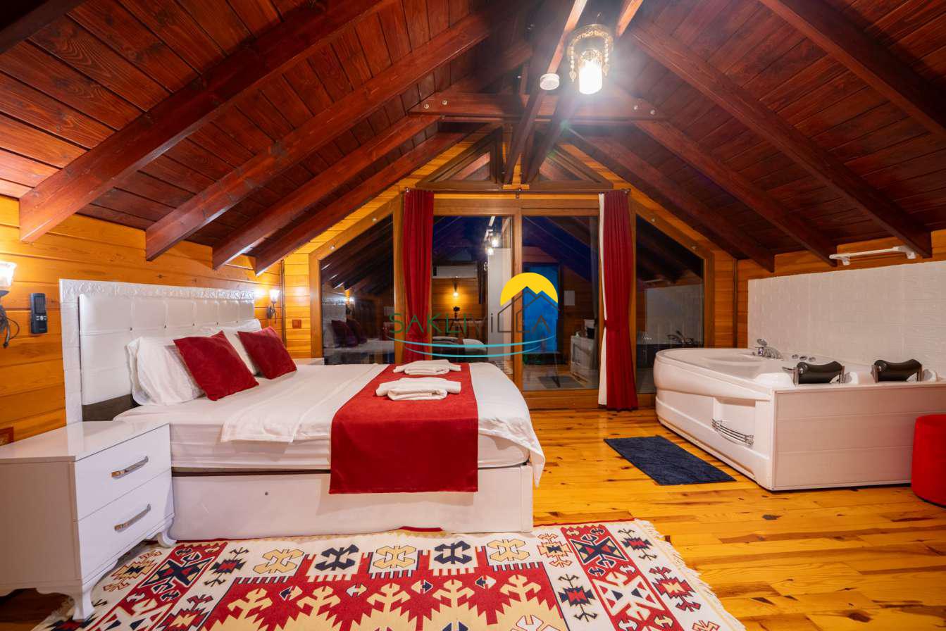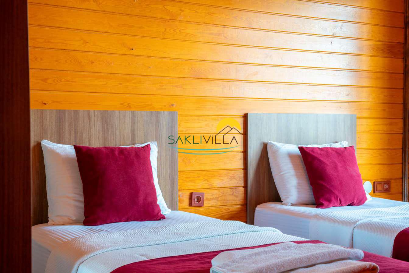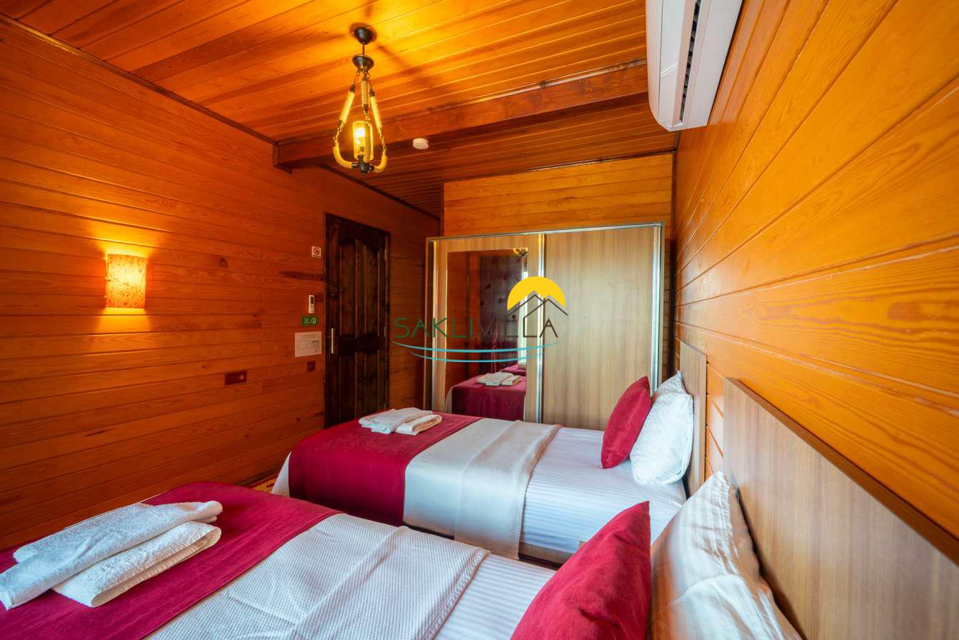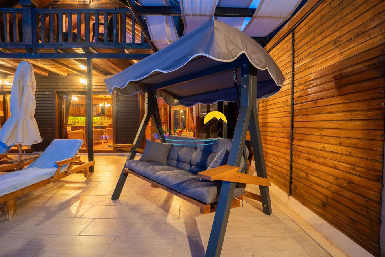 Ahşap mimarisi, doğanın estetiği ile bütünleşen bir tasarım anlayışını yansıtır. kiralık villa’nın iç mekanları da, modern konforu geleneksel bir atmosferle birleştirecek şekilde dekore edilmiştir. 2 yatak odası ve 4 kişi konaklama kapasitesi ile geniş bir aile ya da balayı çiftleri için ideal bir alan sunar. Her detayı düşünülmüş olan Villa Seyir, ferahlığı ve lüksü bir arada hissettirirken, misafirlere evlerinde gibi hissettirecek sıcak bir ortam sağlamaktadır.