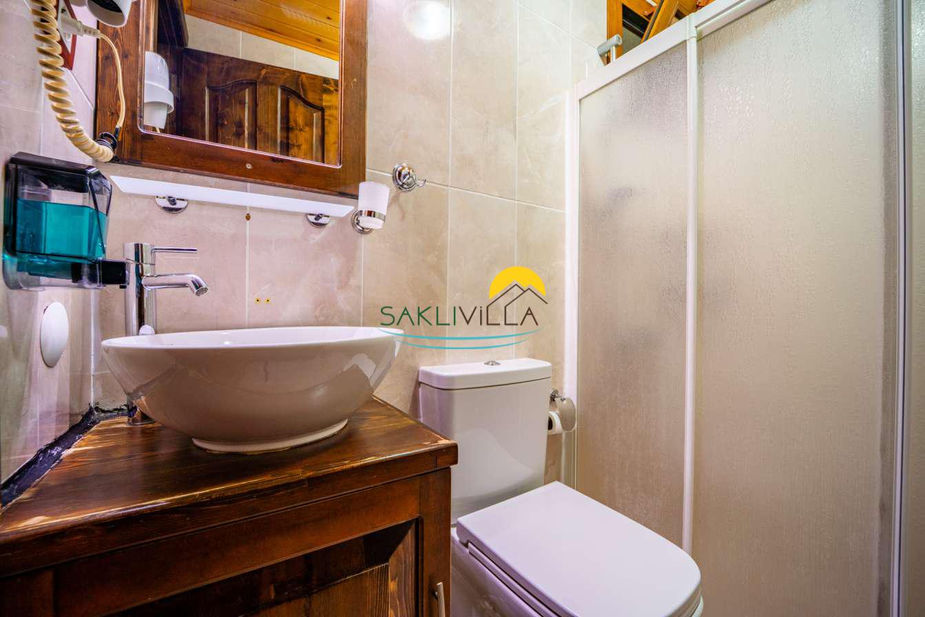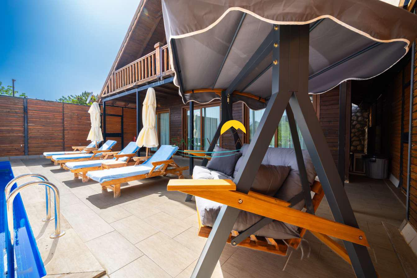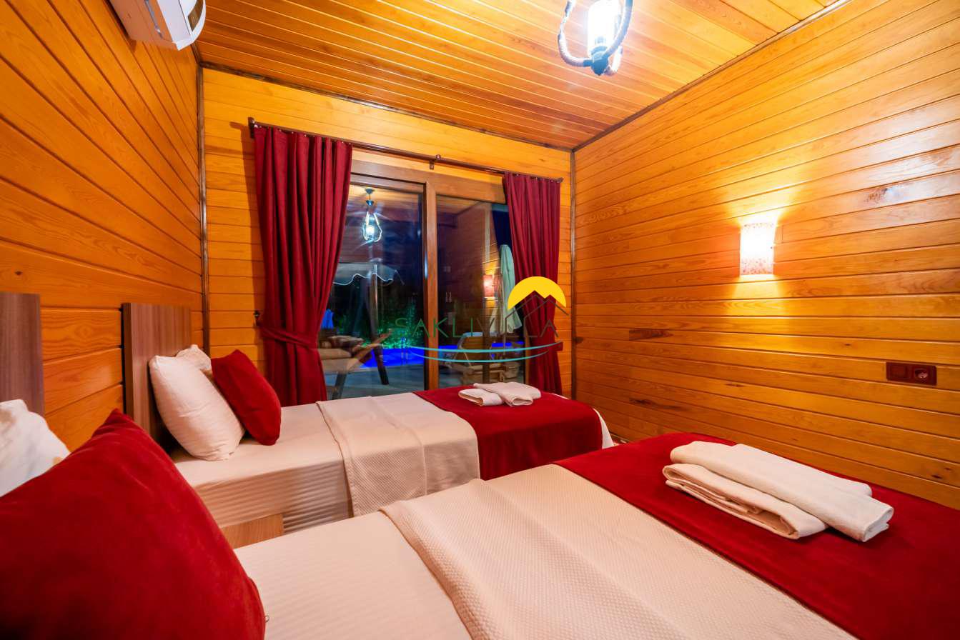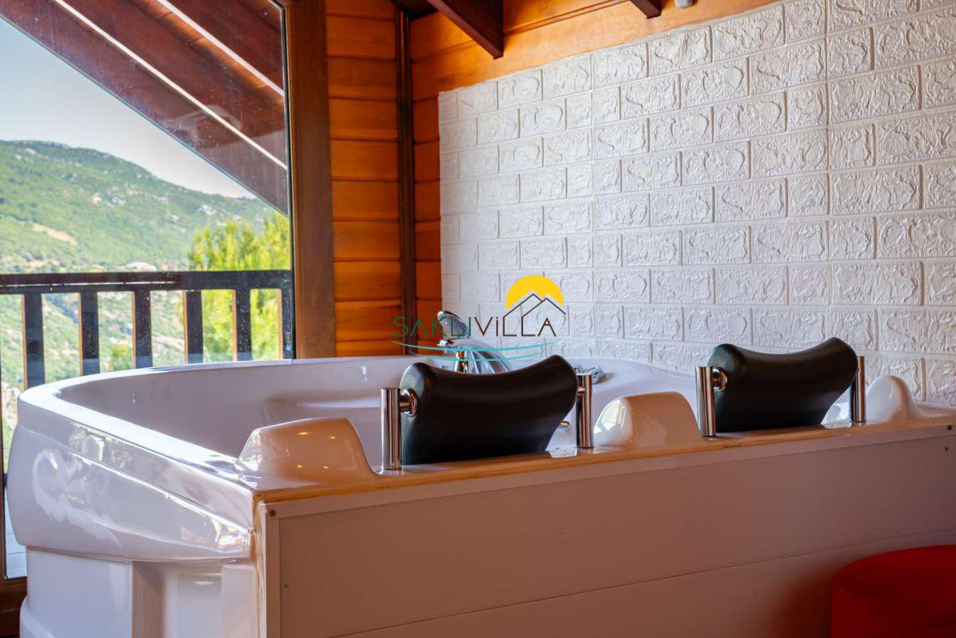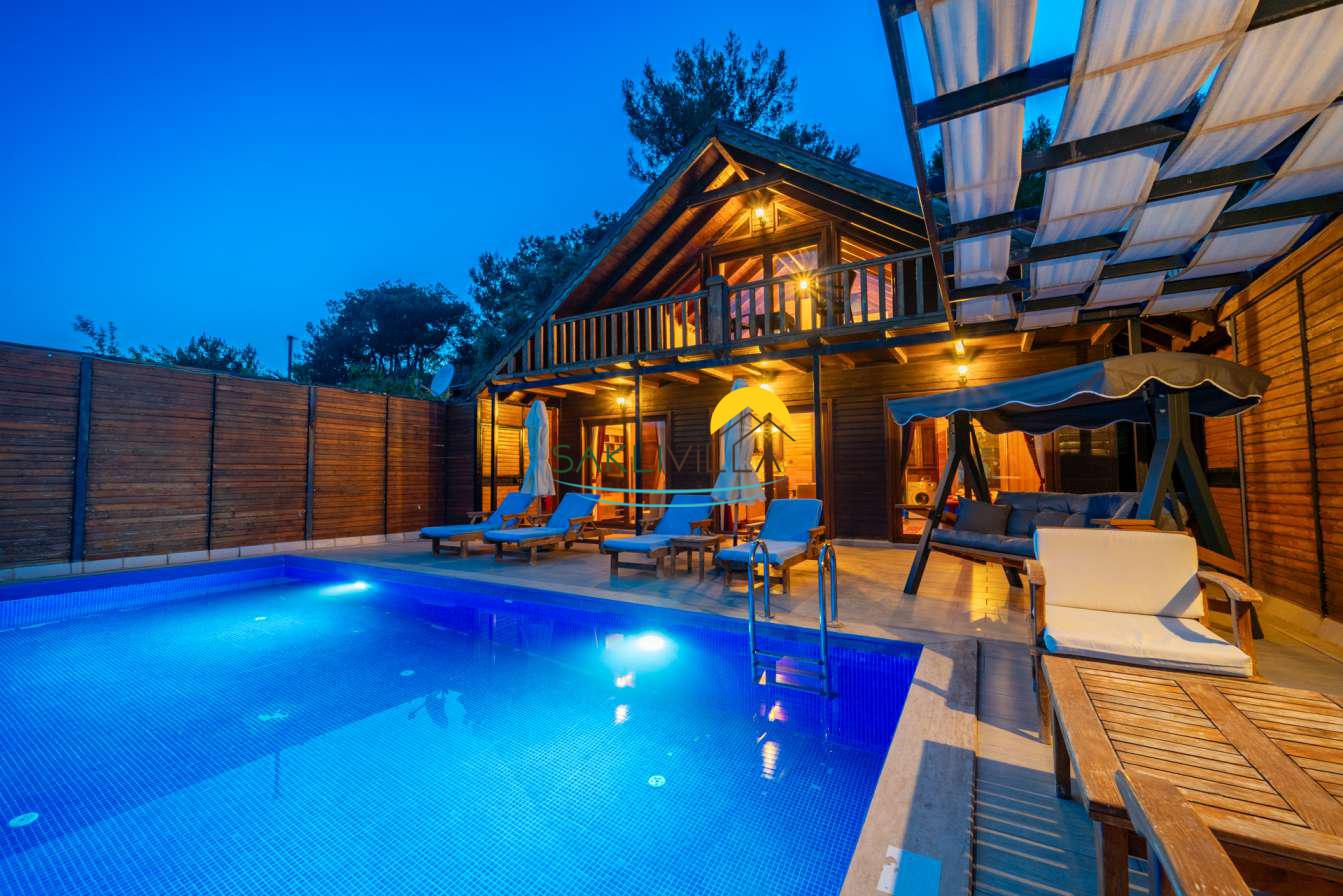 Ahşap mimarisi, doğanın estetiği ile bütünleşen bir tasarım anlayışını yansıtır. kiralık villa’nın iç mekanları da, modern konforu geleneksel bir atmosferle birleştirecek şekilde dekore edilmiştir. 2 yatak odası ve 4 kişi konaklama kapasitesi ile geniş bir aile ya da balayı çiftleri için ideal bir alan sunar. Her detayı düşünülmüş olan Villa Seyir, ferahlığı ve lüksü bir arada hissettirirken, misafirlere evlerinde gibi hissettirecek sıcak bir ortam sağlamaktadır.