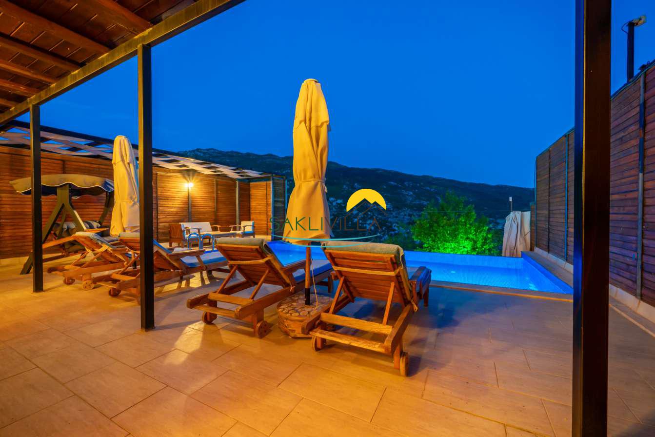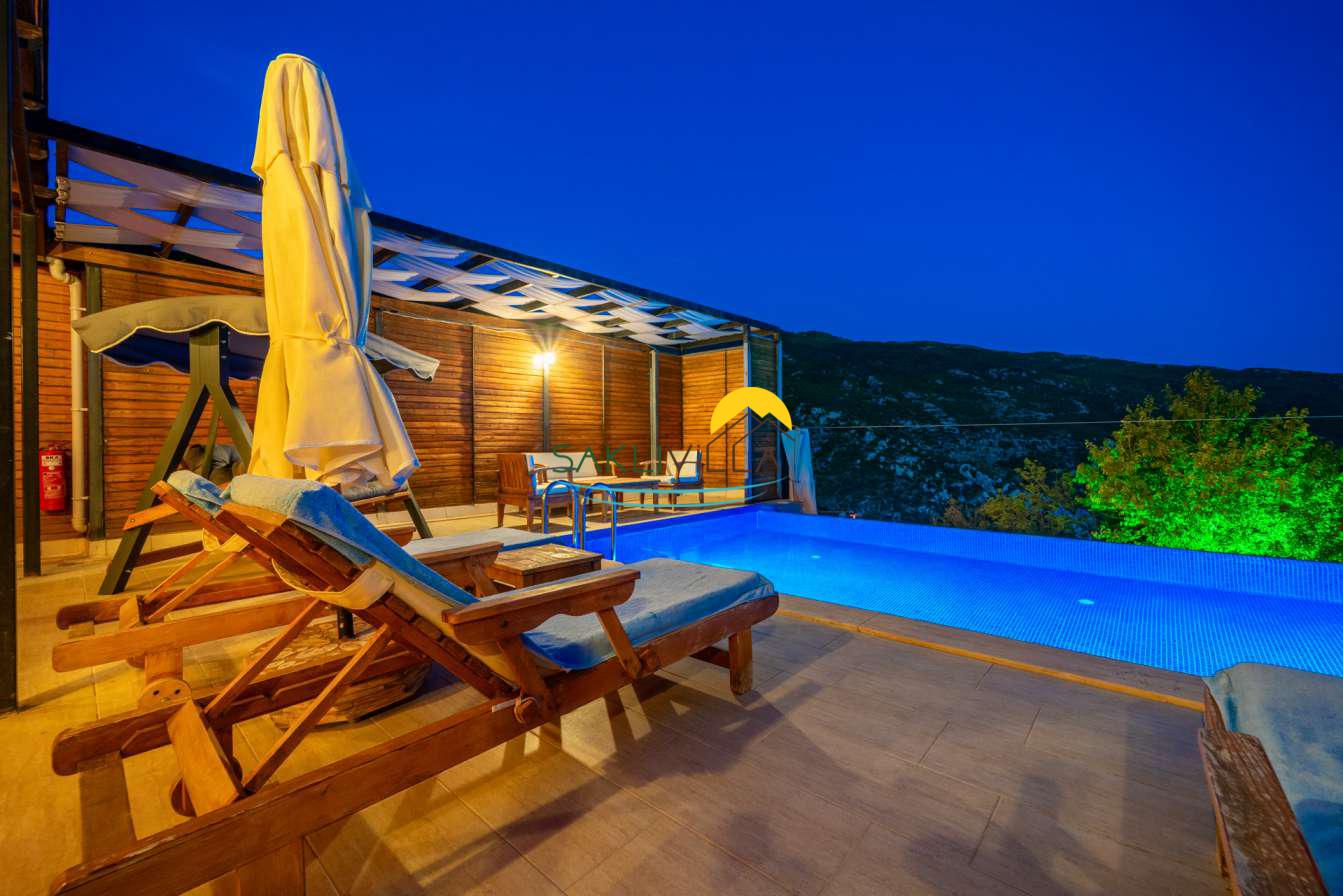 Kiralık Villa Seyir 2, Kalkan İslamlar’da, doğanın kalbinde yer alan özel bir tatil vildasıdır. Ahşap mimari, lüks konfor ve huzurlu bir ortam arayanlar için ideal bir tercih olan bu villa, hem aileler hem de çiftler için unutulmaz bir tatil deneyimi sağlamak amacıyla tasarlanmıştır. Villa Seyir, sadece bir konaklama yeri değil, aynı zamanda ruhunuzu dinlendirecek, sevdiklerinizle hayatı kutlayacağınız bir mekandır. Bu yaz tatilinde, eşsiz manzaralar eşliğinde unutulmaz anılar biriktirmek ve huzuru bulmak için Villa Seyir’i tercih edebilirsiniz. Unutamayacağınız heyecan dolu anlar için kapıları sizin için açıyor.