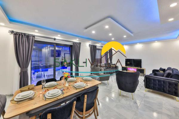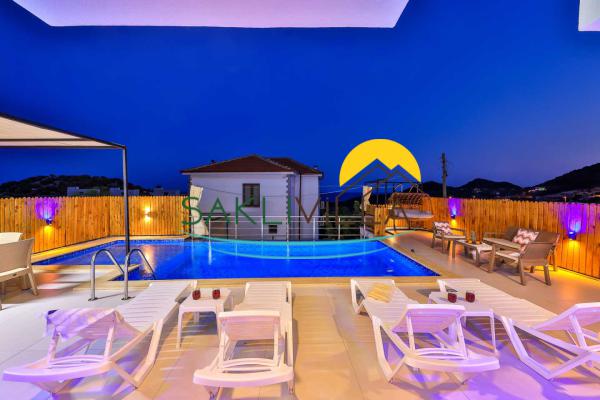 Villa Seyran'ın en önemli özelliklerinden biri de, özel korunaklı havuzudur. Misafirlerin mahremiyetini ön planda tutarak tasarlanan havuz, dışarıdan gözetlenmeden rahatça yüzme ve güneşlenme imkanı sunmaktadır. Özellikle yaz aylarında serinlemek ve güneşin tadını çıkarmak isteyen konuklar için bu havuz, eşsiz bir olanak sağlamaktadır. Havuz çevresinde yer alan rahat şezlonglar ve dinlenme alanları, tatilin keyfini çıkarırken aynı zamanda dinlenme imkanı da sunmaktadır. Bu korunaklı alan, tatilcilerin sevdikleriyle birlikte huzurlu anlar geçirebilecekleri bir ortam yaratmaktadır.
